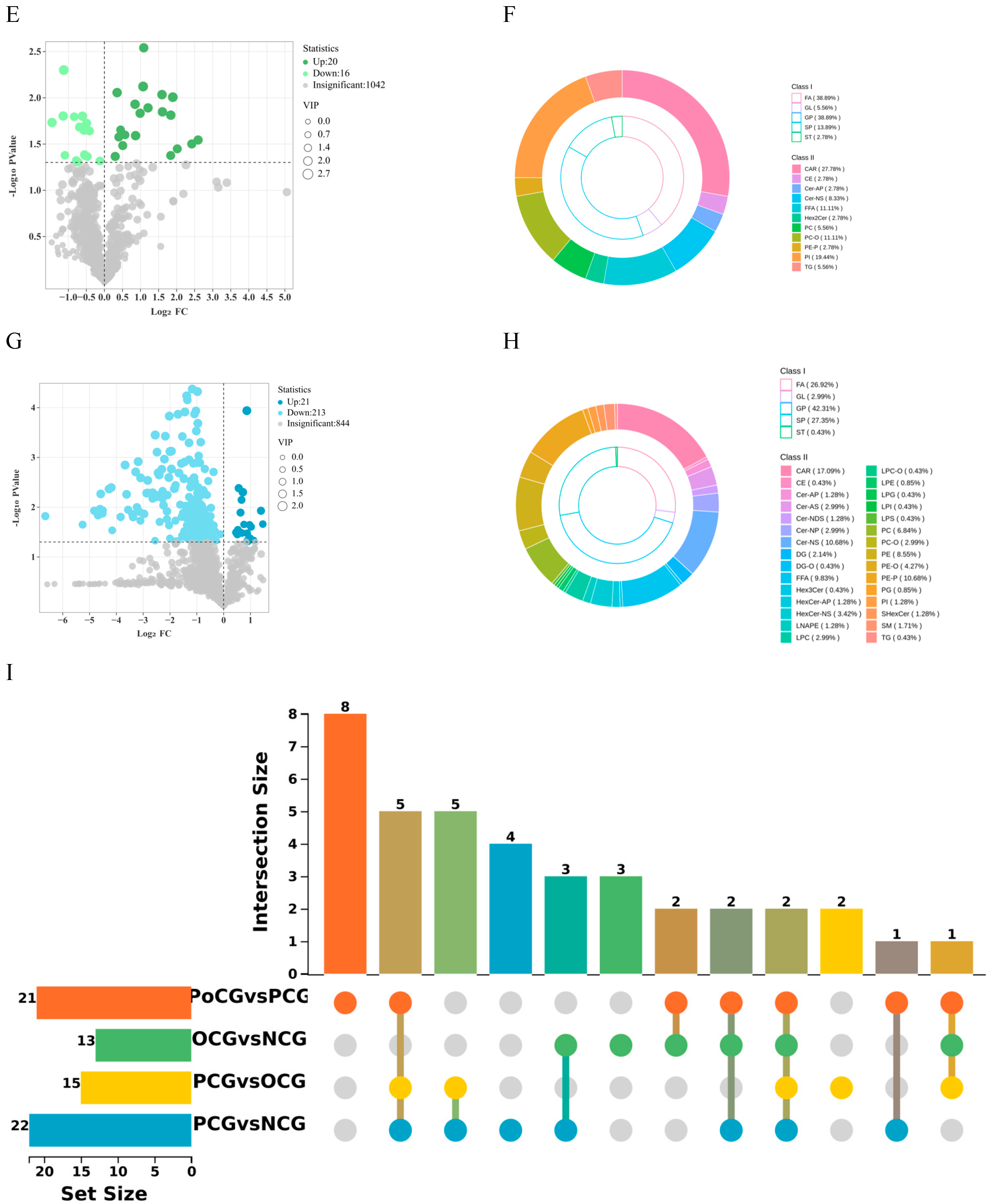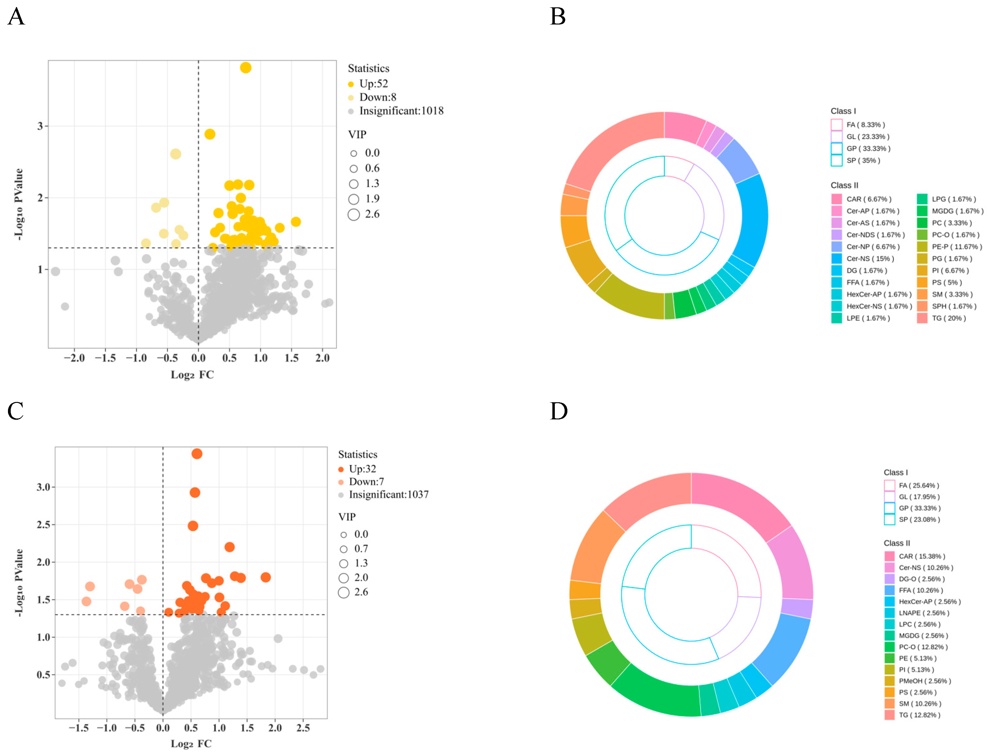 3.3. Volcano Plots of Differential Lipid Metabolites