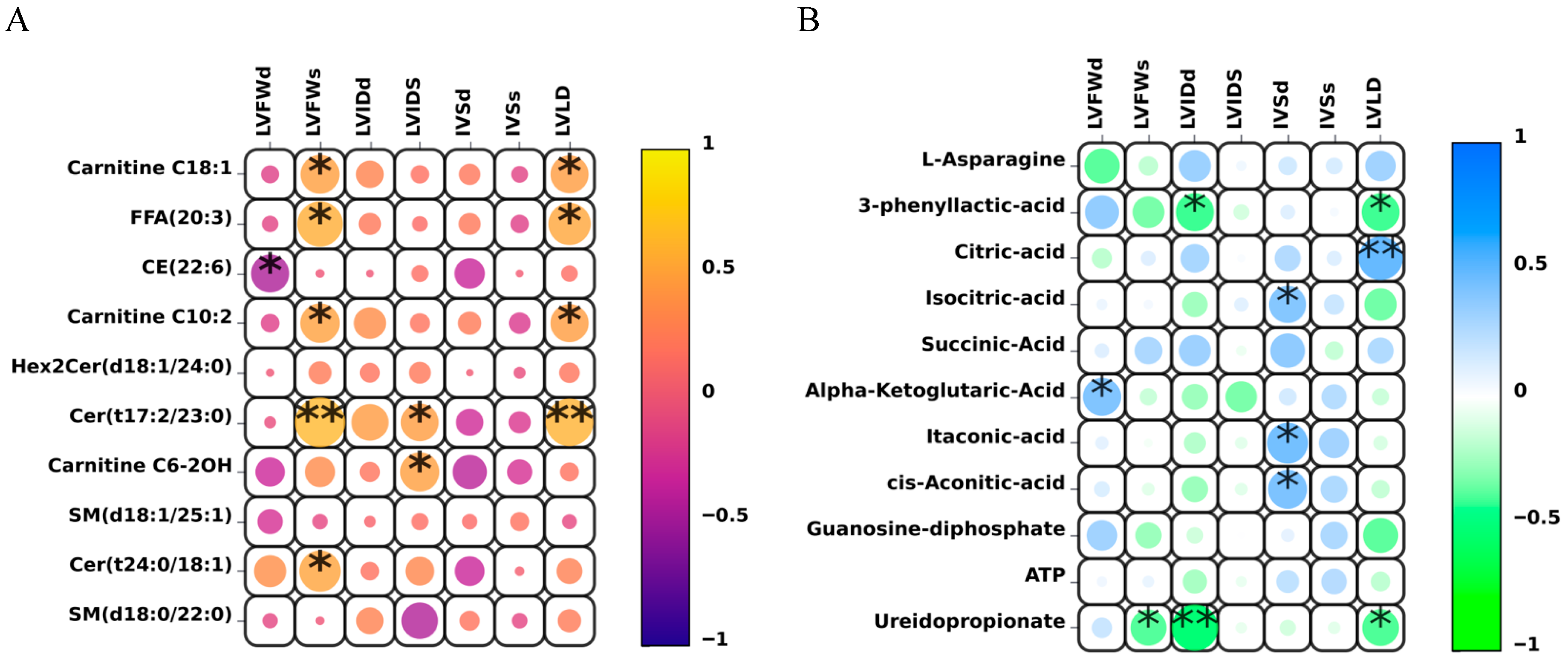 3.5. Correlation Analysis Between Core Quantitative Differential Lipid and Energy Metabolites and Key Left Ventricular Cardiac Indicators
