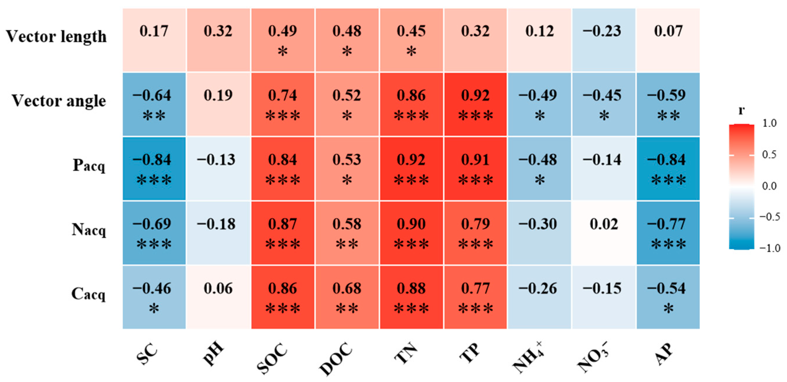 - Moorhead, D.L.; Sinsabaugh, R.L.; Hill, B.H.; Weintraub, M.N. Vector analysis of ecoenzyme activities reveal constraints on coupled C, N and P dynamics. Soil Biol. Biochem. 2016, 93, 1–7. [Google Scholar] [CrossRef]