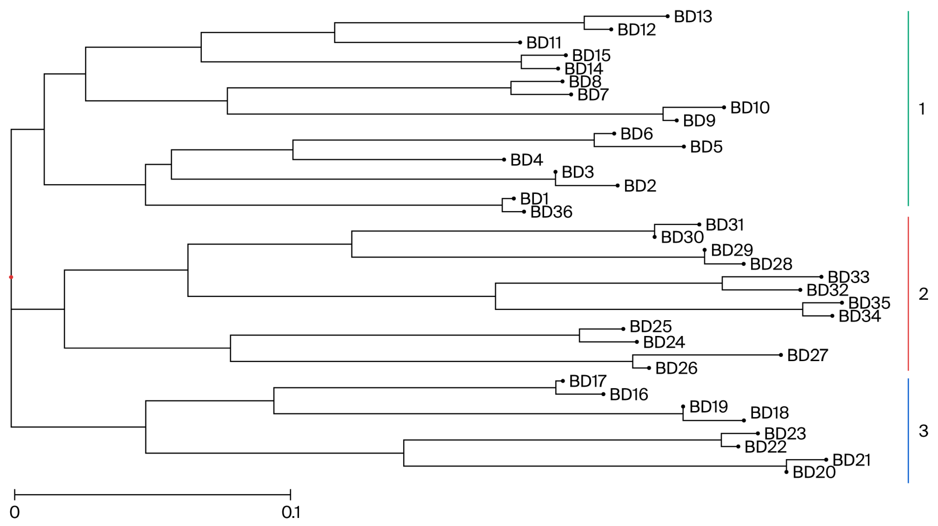 | BD31 | Landrace * | Kenya, Africa | Kenya | 36 | SPK 004 | Orange |