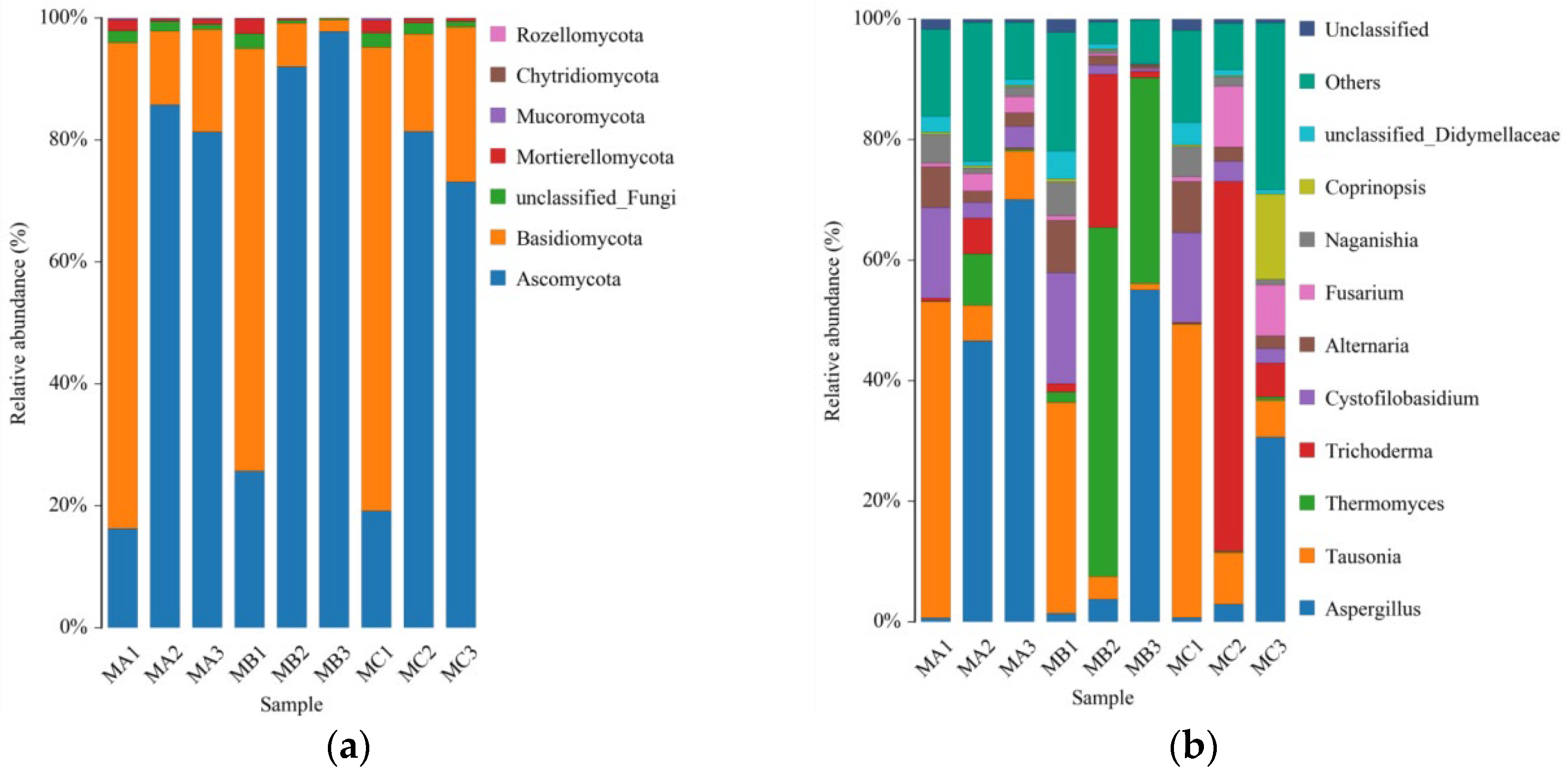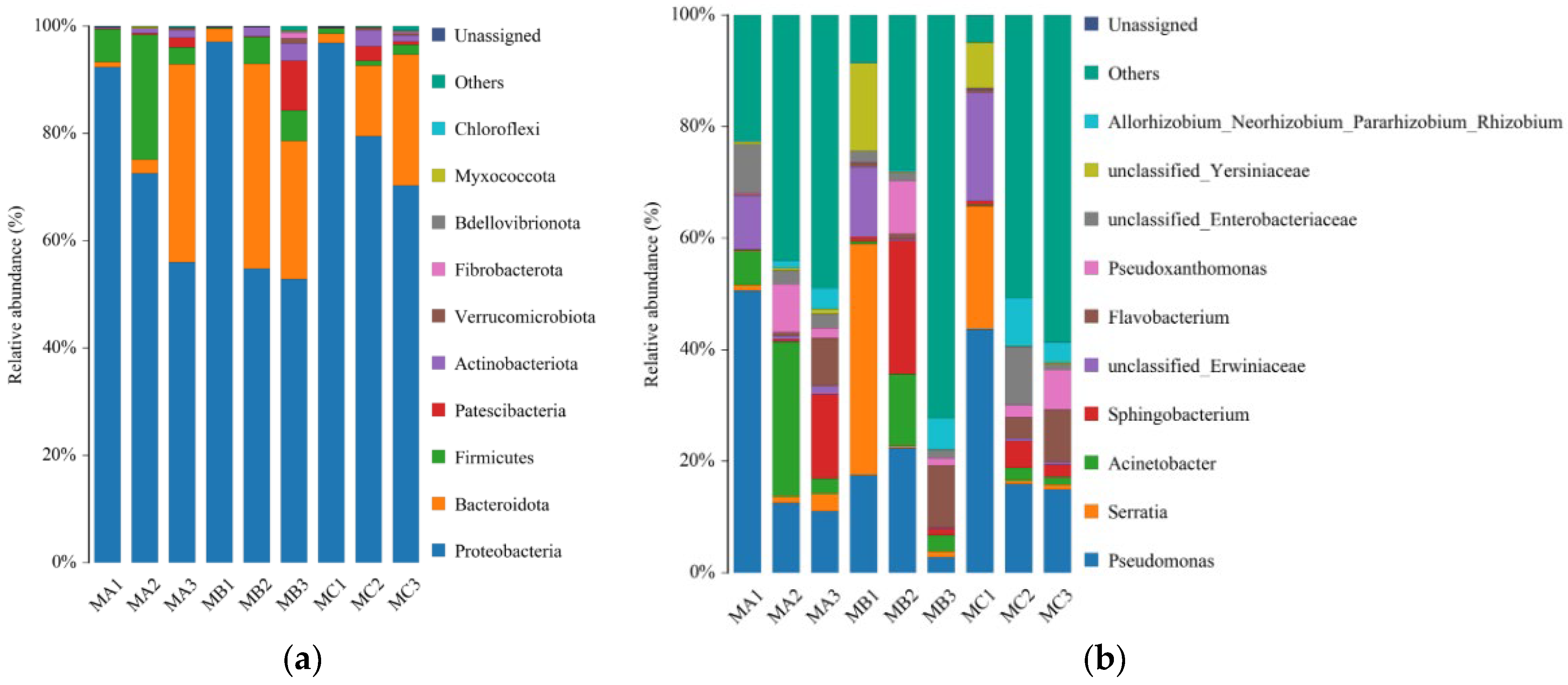 77. Zhan, Y.; Chang, Y.; Tao, Y.; Zhang, H.; Lin, Y.; Deng, J.; Ma, T.; Ding, G.; Wei, Y.; Li, J. Insight into the dynamic microbial community and core bacteria in composting from different sources by advanced bioinformatics methods. Environ. Sci. Pollut. Res. 2023, 30, 8956–8966. [Google Scholar] [CrossRef] [PubMed]
