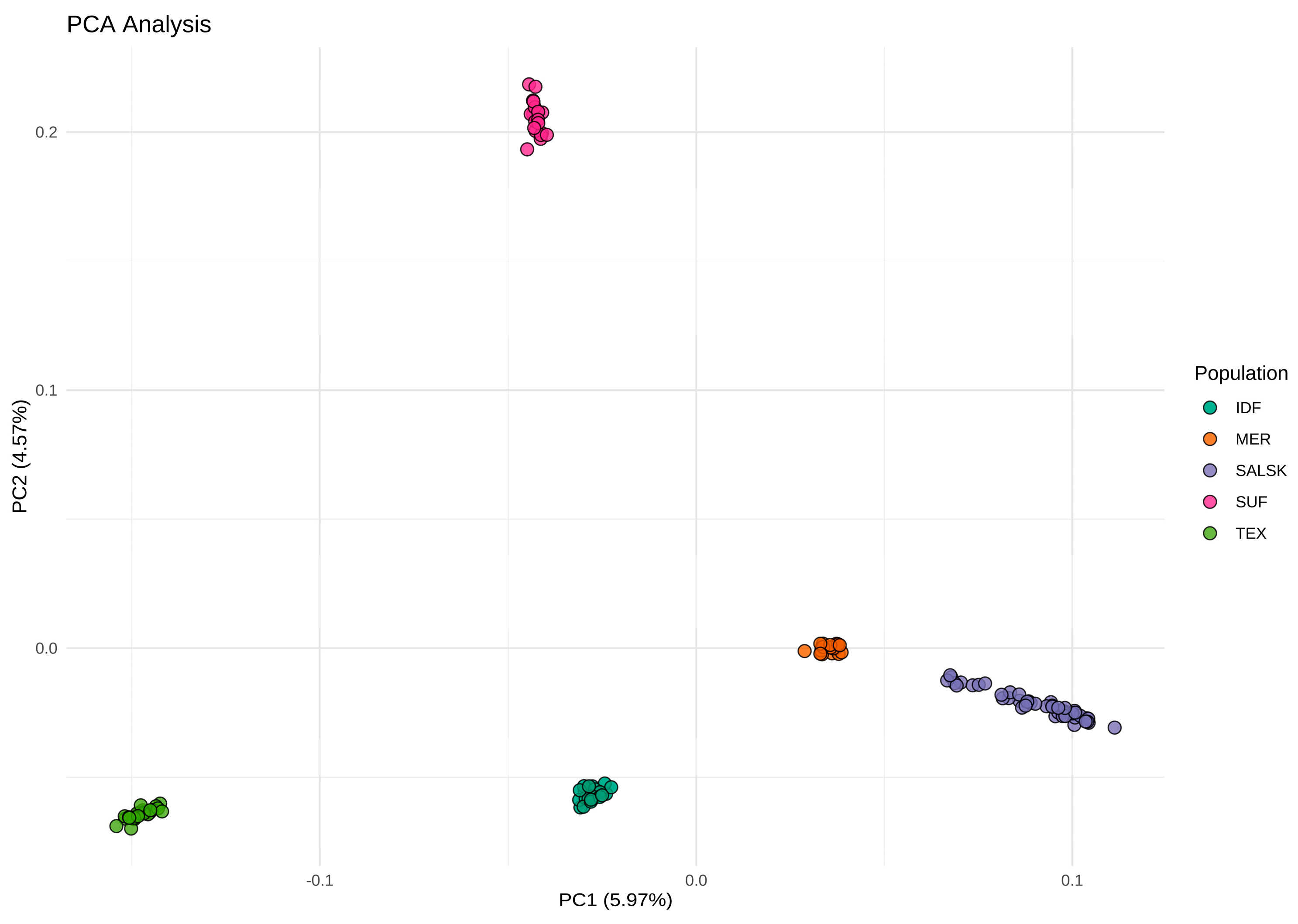 3.3. Genetic Differentiation Between Studied Sheep Breeds (Fst)