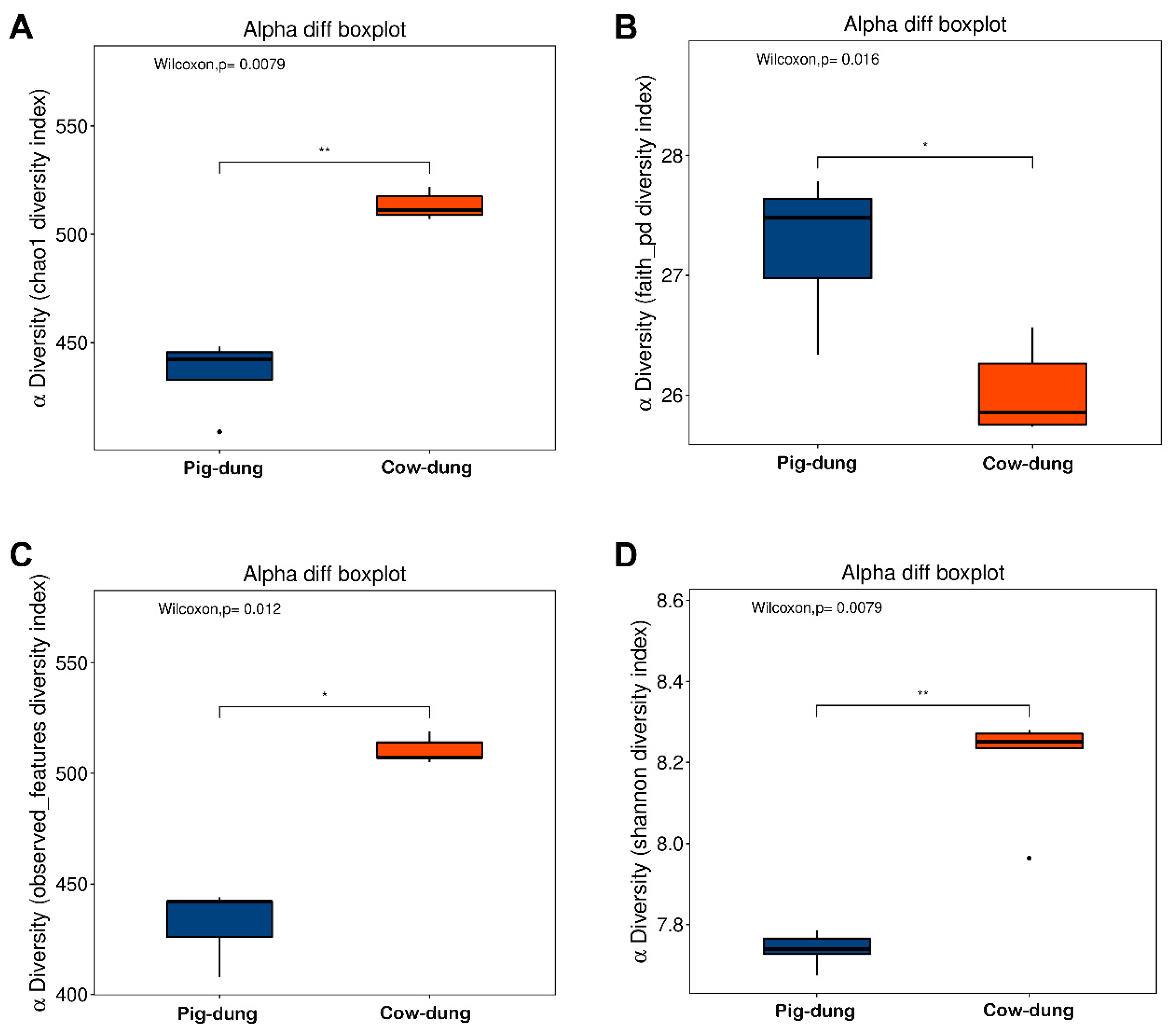 3.4. Comparative Evaluation of Dung Microbiota Variations Between Two Groups