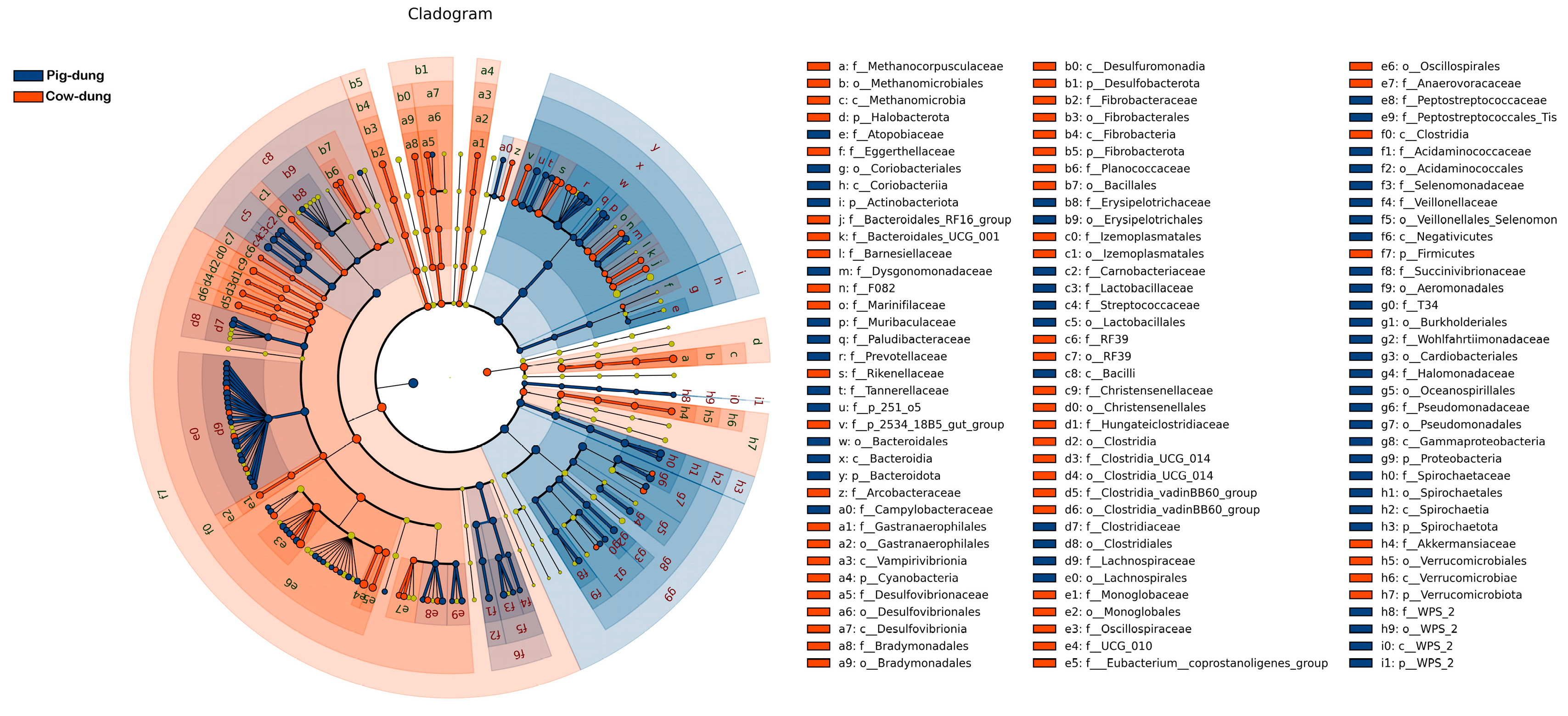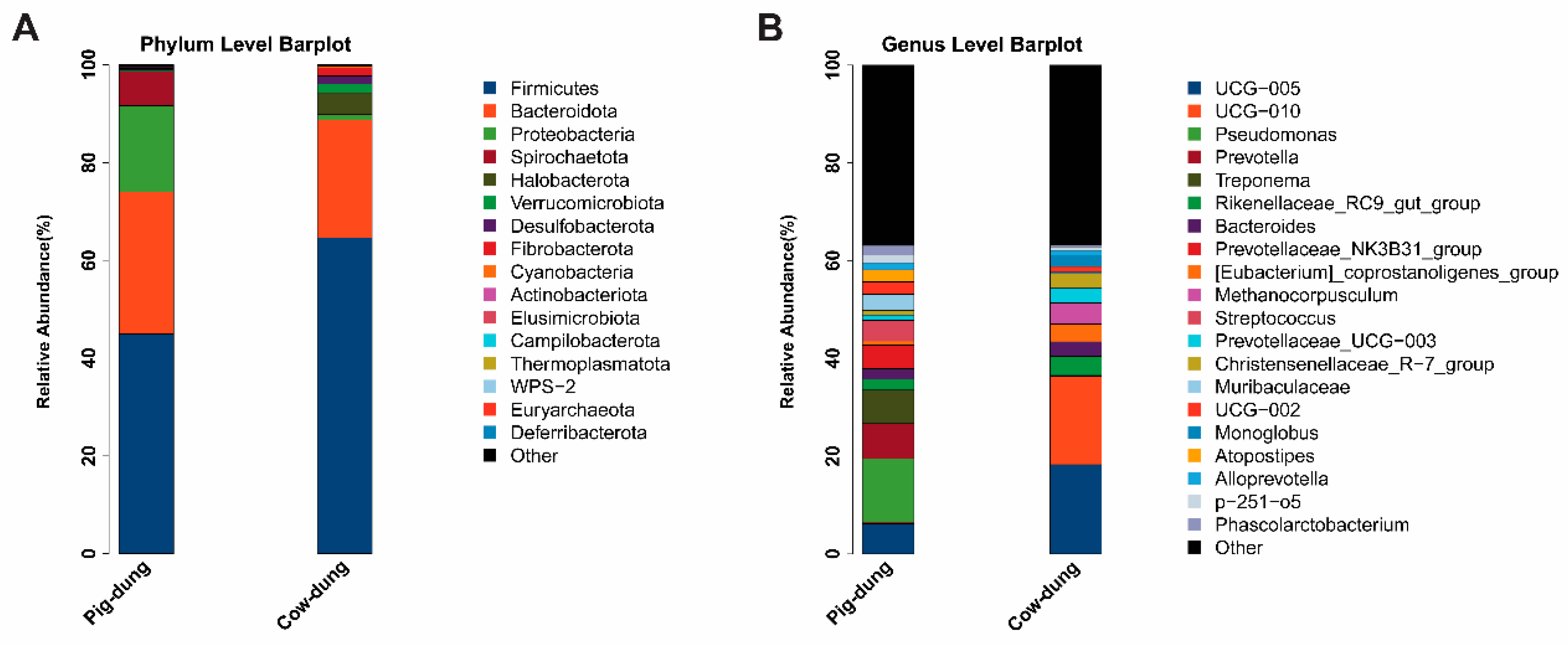 3.8. Analysis of Specific Microorganisms Between Cow and Pig Dung Samples