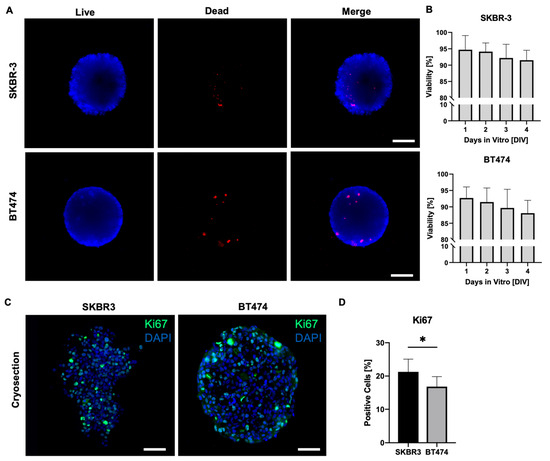 3.2. Assessment of Viability and Proliferation in HER2+ BCa Spheroids