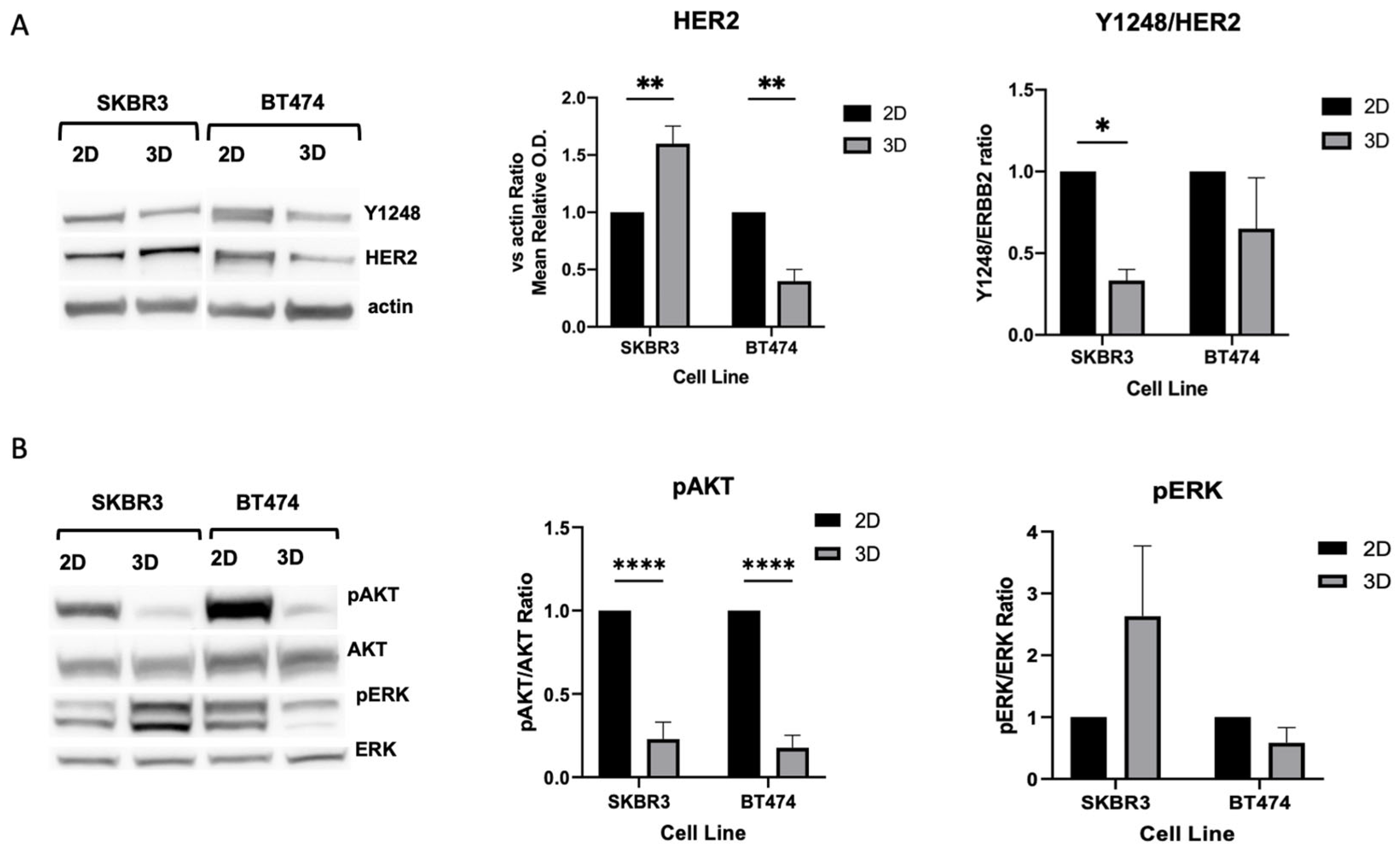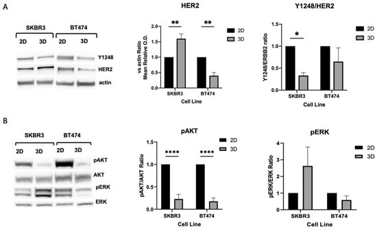 - Gangadhara, S.; Smith, C.; Barrett-Lee, P.; Hiscox, S. 3D Culture of Her2+ Breast Cancer Cells Promotes AKT to MAPK Switching and a Loss of Therapeutic Response. BMC Cancer 2016, 16, 345. [Google Scholar] [CrossRef] [PubMed]