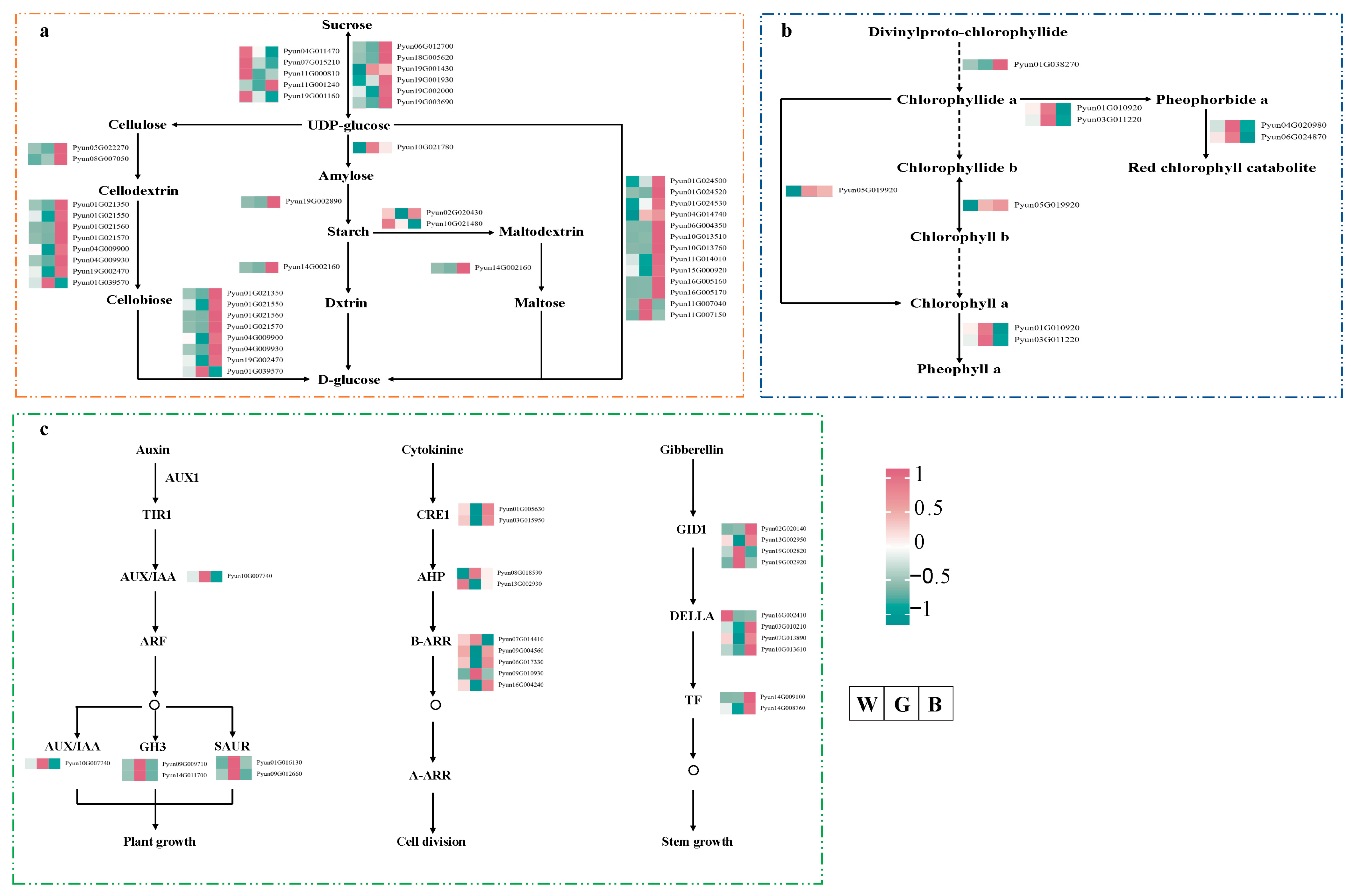 4.4. Expression Characteristics of Hormone Signaling Pathway Genes in P. qamdoensis Under BF and GF Treatments