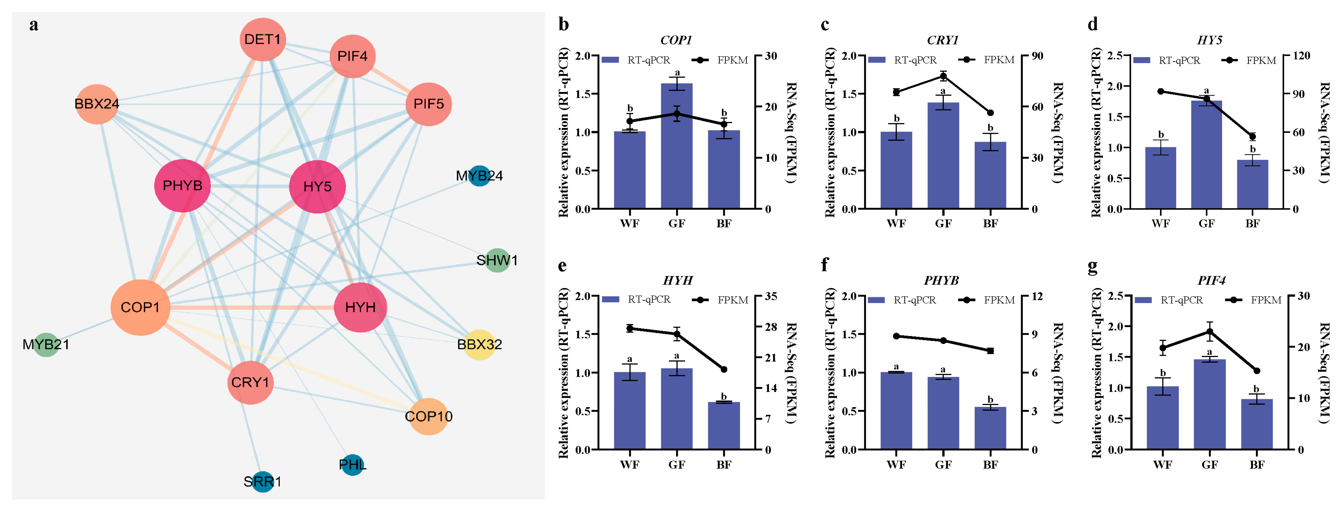 3.9. Expression Patterns of Light Signaling-Related Transcription Factors (TFs)