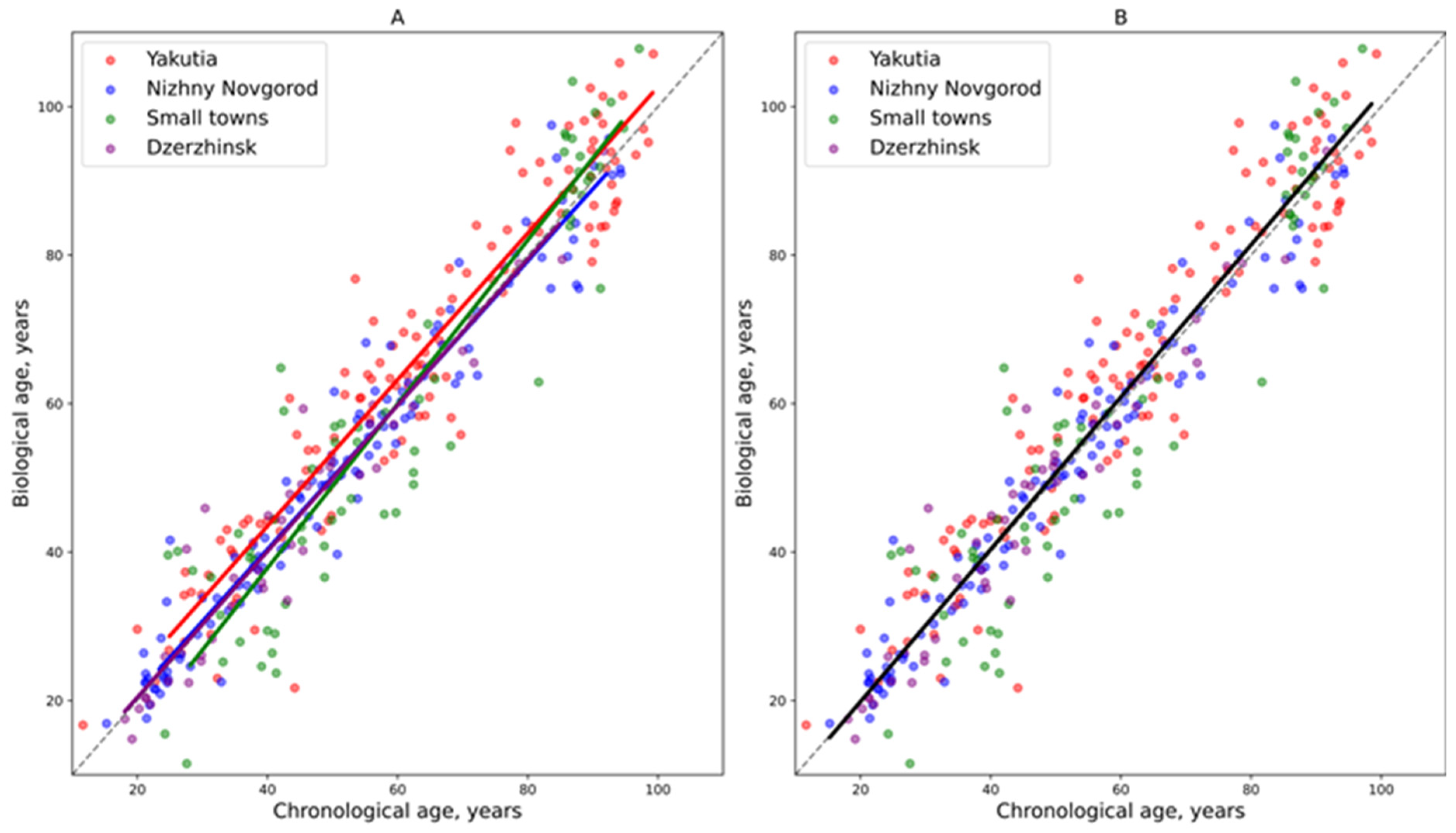 - Erema, V.V.; Yakovchik, A.Y.; Kashtanova, D.A.; Bochkaeva, Z.V.; Ivanov, M.V.; Sosin, D.V.; Matkava, L.R.; Yudin, V.S.; Makarov, V.V.; Keskinov, A.A.; et al. Biological Age Predictors: The Status Quo and Future Trends. Int. J. Mol. Sci. 2022, 23, 15103. [Google Scholar] [CrossRef]