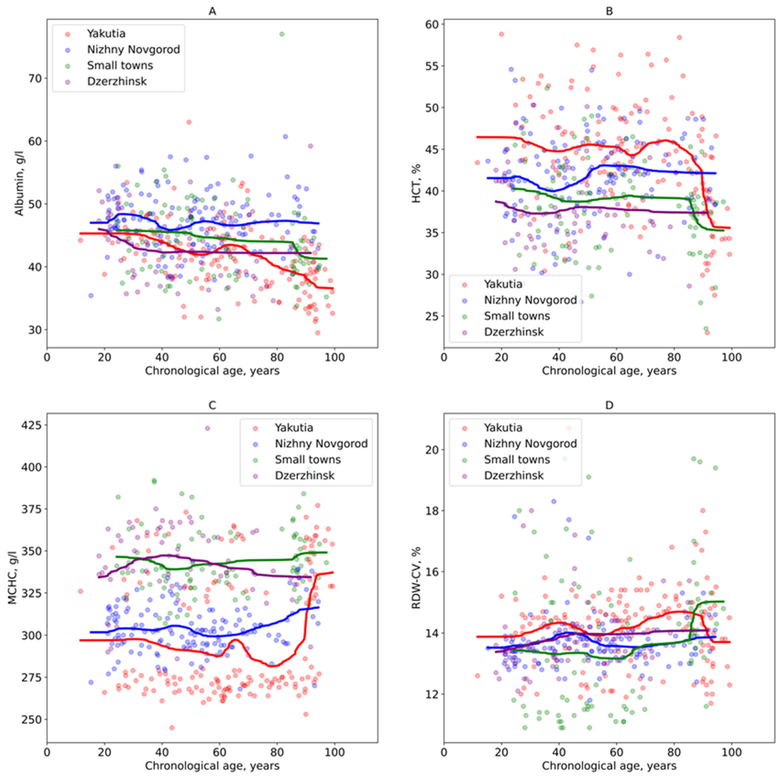 3.2. Analysis of Regional Age-Related Variations in Blood Parameters