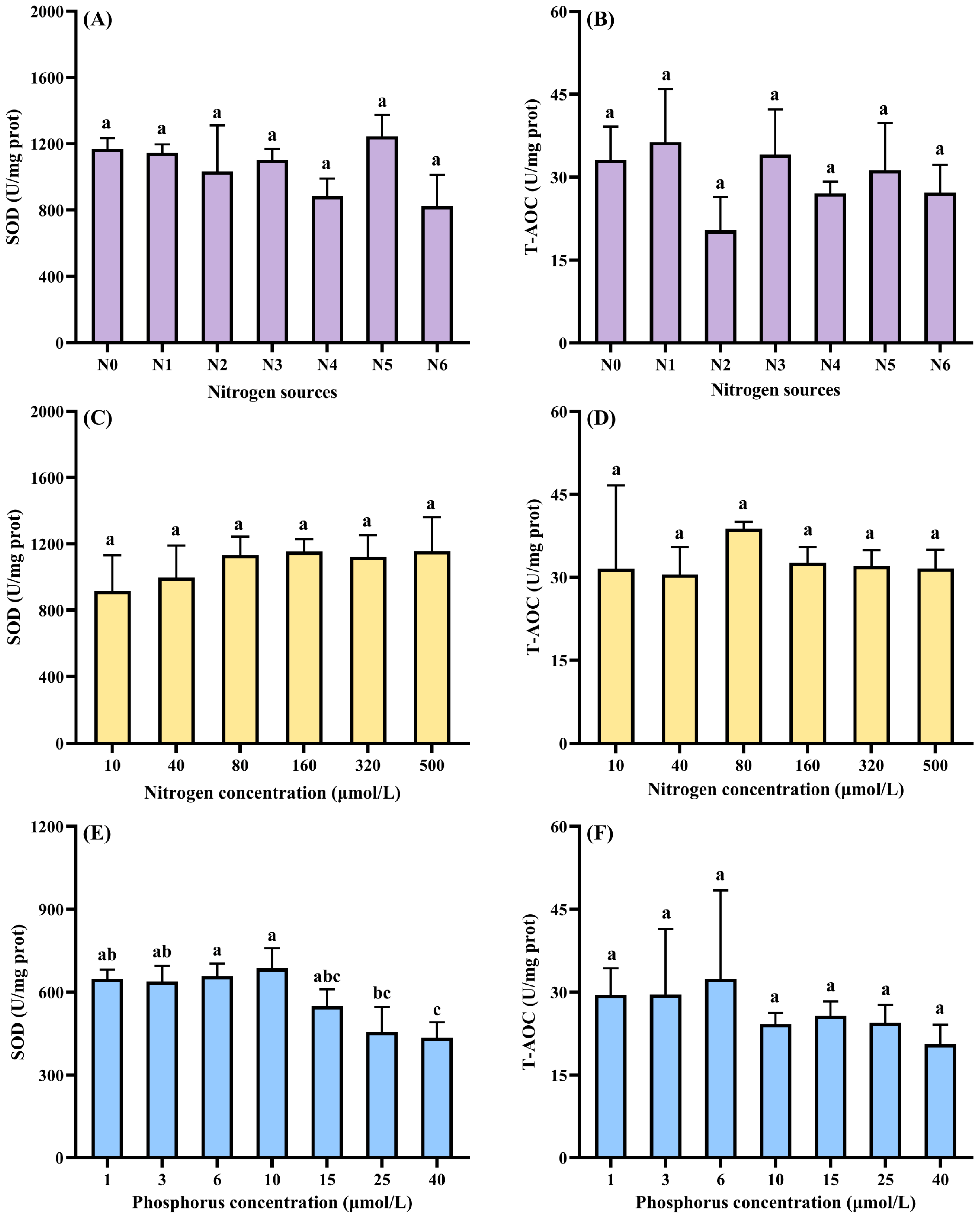 - Seven nitrogen concentrations (10 µmol L−1 total P): 0, 10, 40, 80, 160, 320, and 500 µmol L−1; NO3−-N was the nitrogen source;