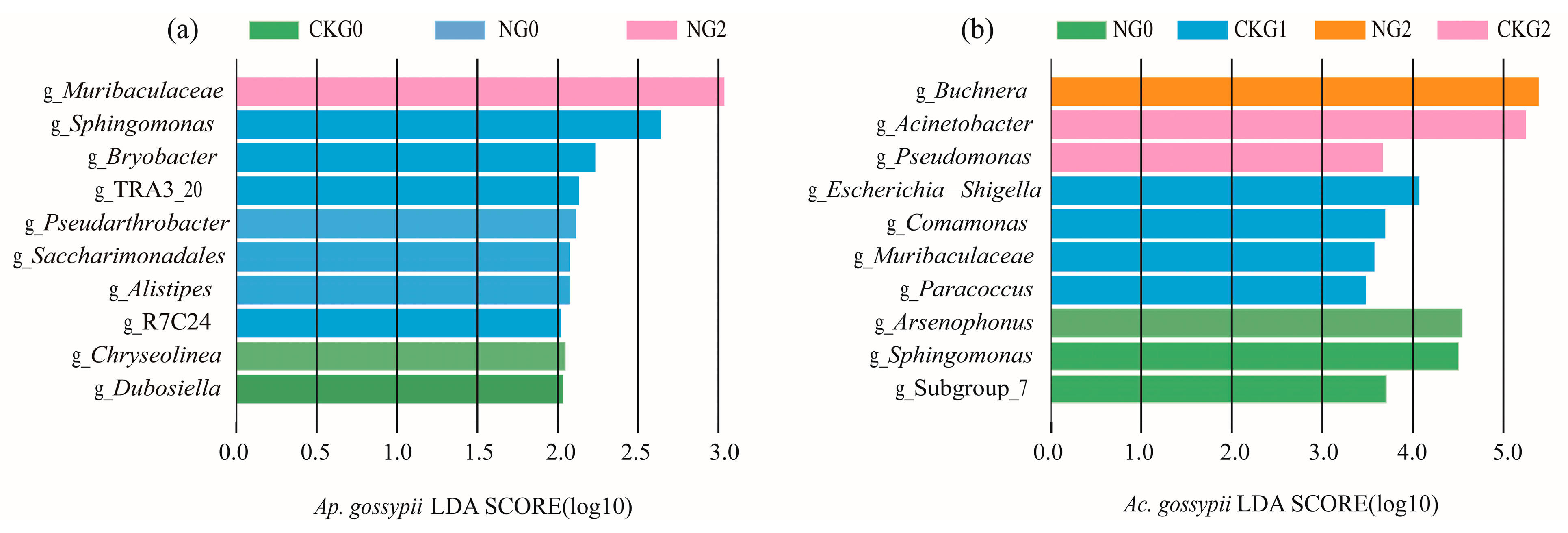 3.5. Microbial Community of Aphis gossypii and Acyrthosiphon gossypii Under Nitenpyram Exposure