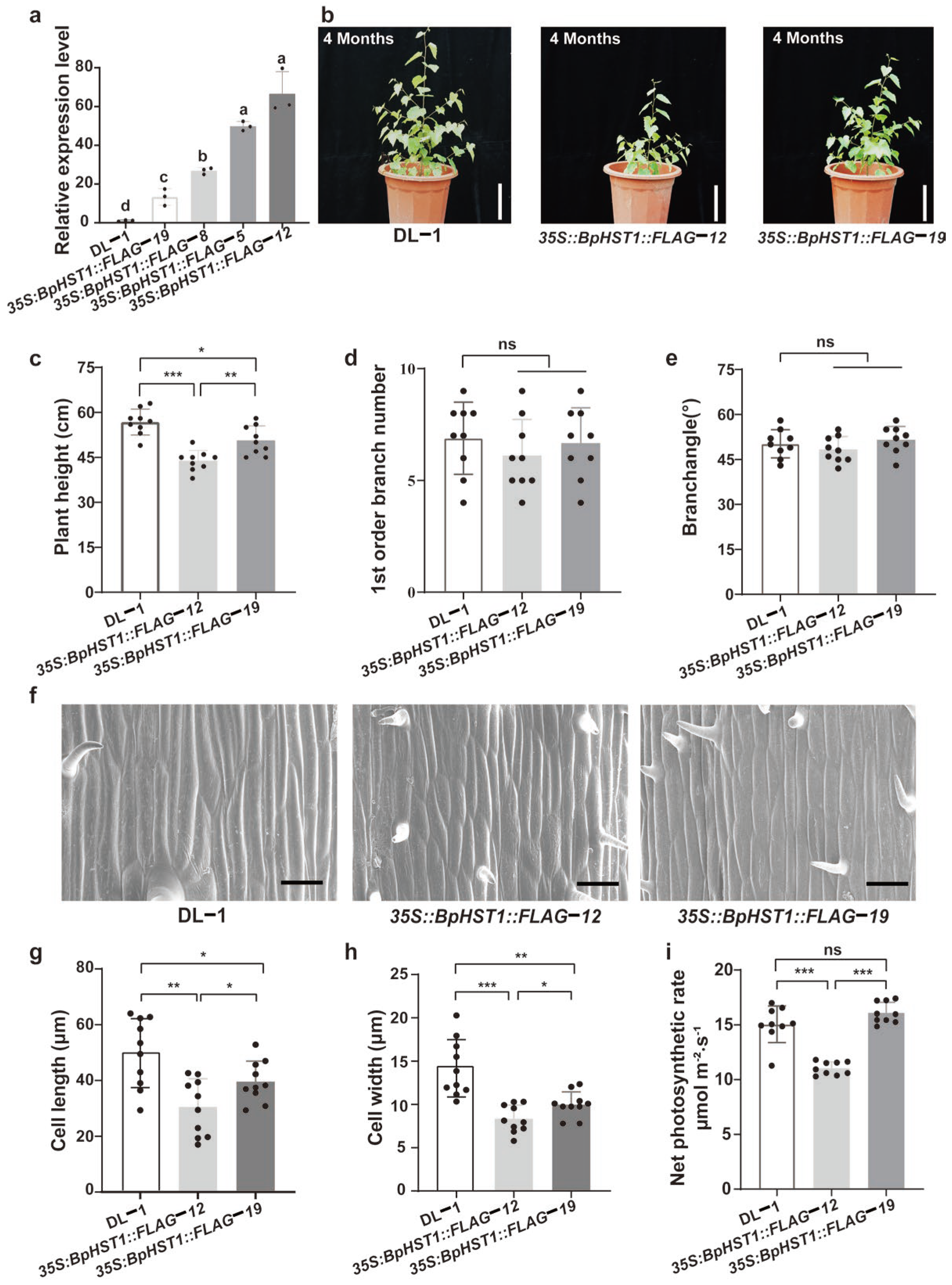 3.2. Overexpression of BpHST1 Inhibited the Growth and Development in Birch