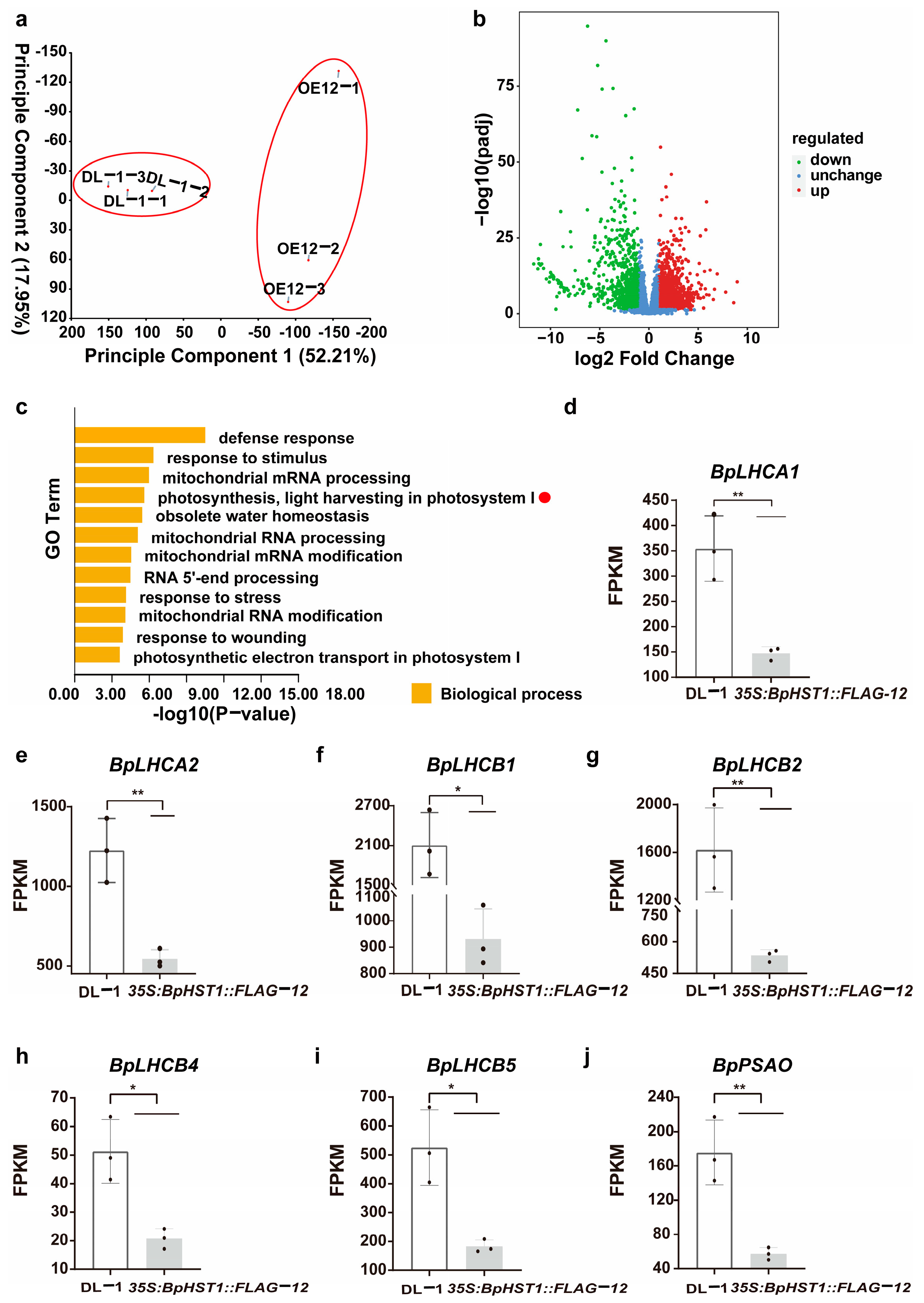 4.2. BpHST1 Mediated Repression of Light-Harvesting Gene BpLHCA2