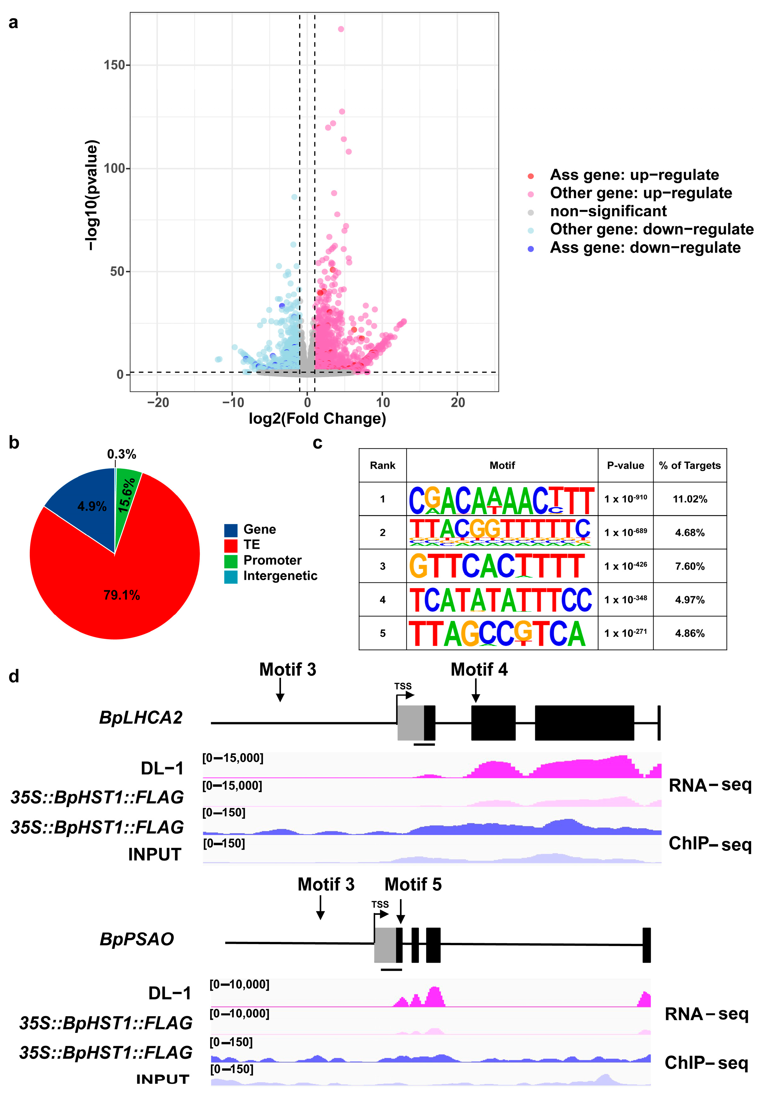 3.4. BpHST1 Binds to the Promoter of BpLHCA2 and Represses the Expression of Its Downstream Genes