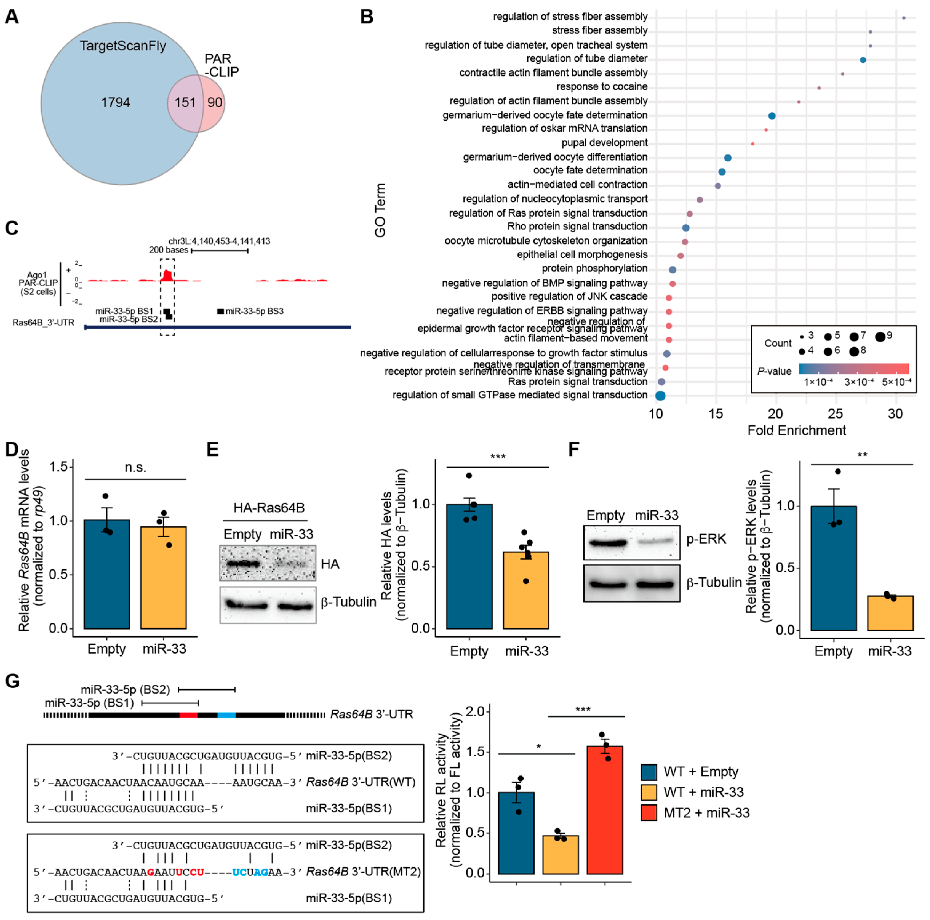 3.2. miR-33-5p Suppresses Ras64B in Drosophila