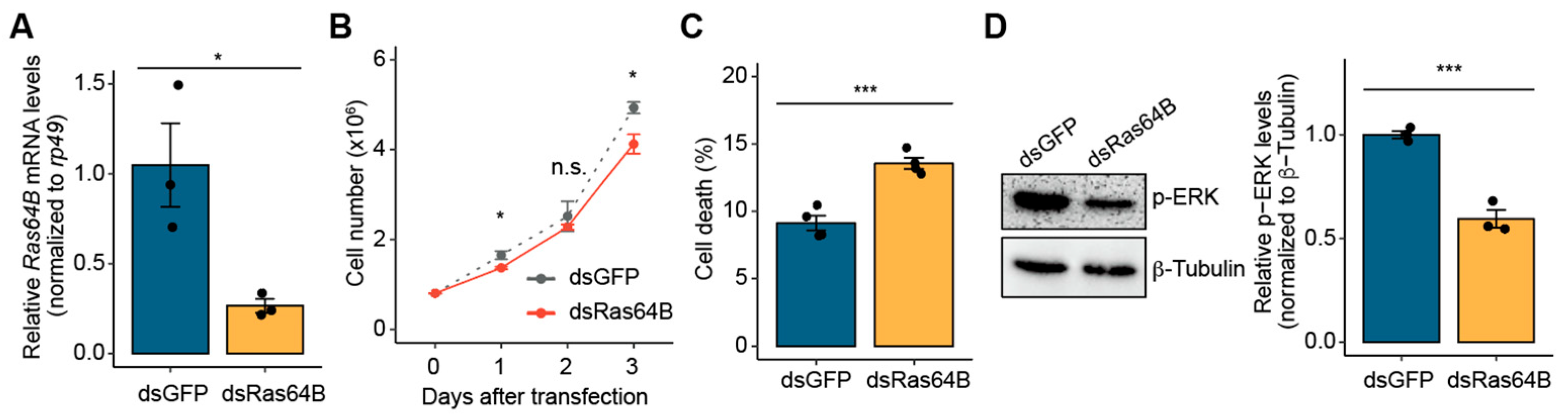 3.3. Ras64B Is Involved in Cell Proliferation in S2 Cells