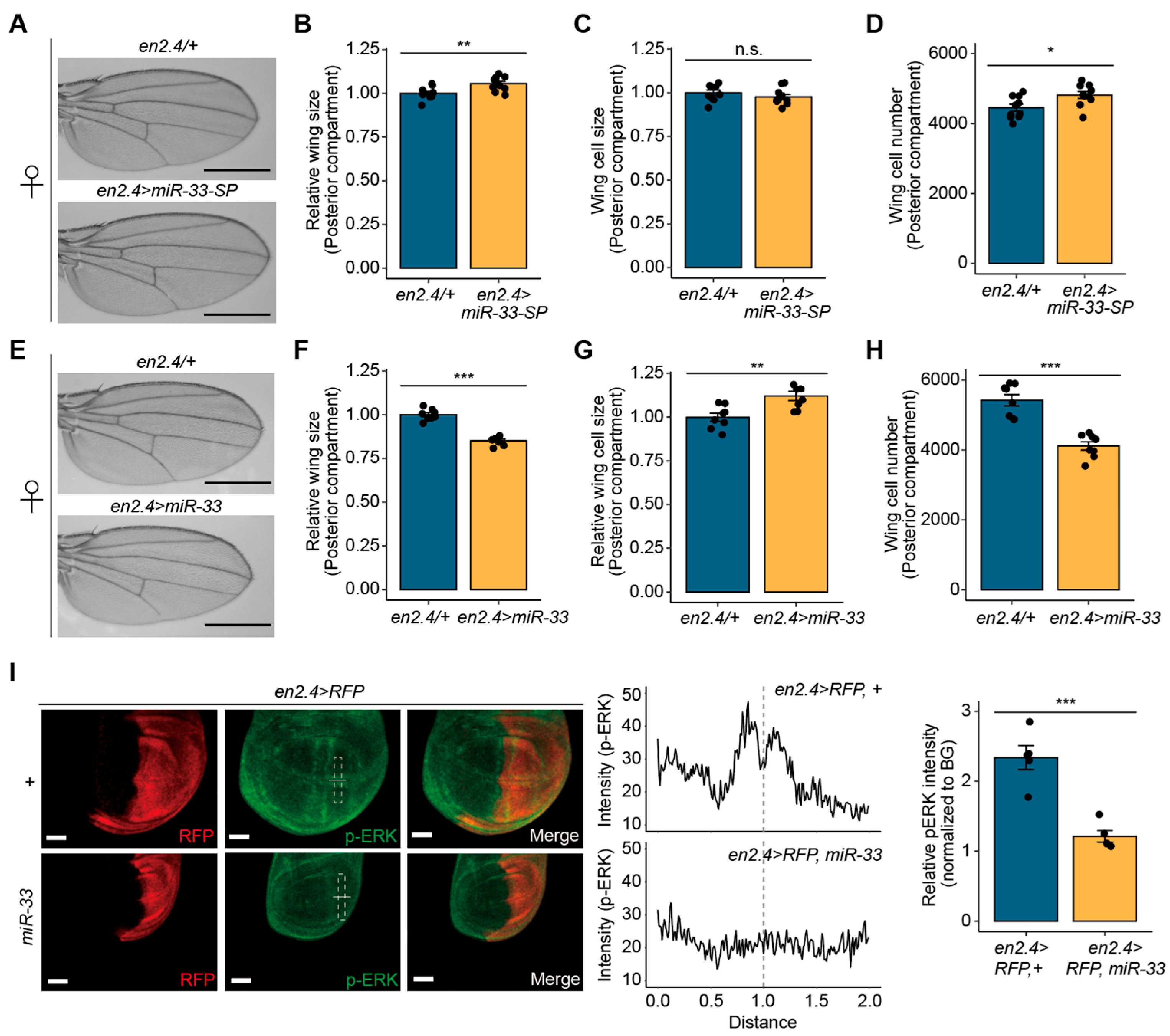 3.4. miR-33 Regulates Drosophila Wing Size