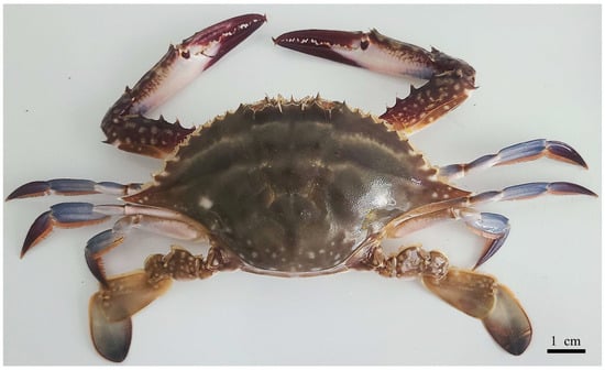 - Che, J.; Liu, M.; Hou, W.; Dong, Z.; Yang, S.; Cheng, Y.; Wu, X. Growth and Gonadal Development Regularity of Male Portunus trituberculatus Cultured in Ponds. Chin. J. Zool. 2019, 54, 347–361. [Google Scholar] [CrossRef]