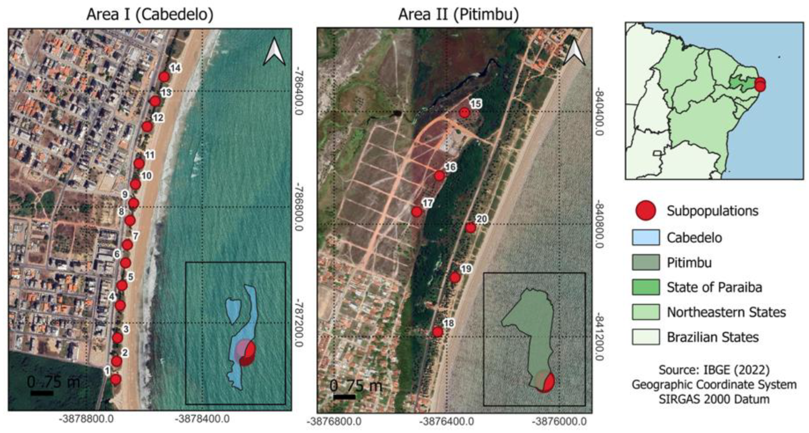 | Area II | Pitimbu | 2.5 | 25.9 (21–30) | 1165 | Anthropized restinga |