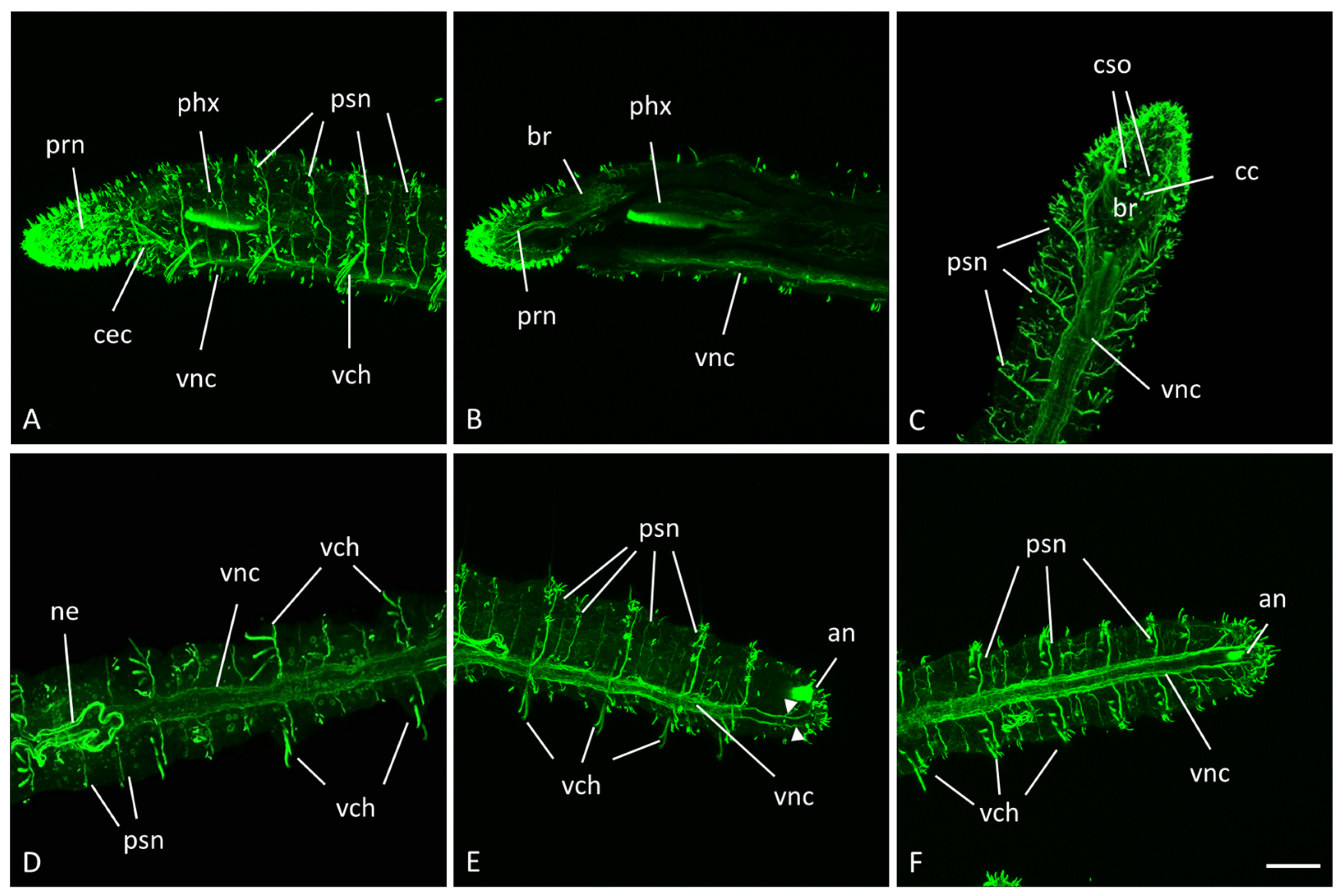 - Ordoñez, J.F.; Wollesen, T. Unfolding the Ventral Nerve Center of Chaetognaths. Neural Dev. 2024, 19, 5. [Google Scholar] [CrossRef]