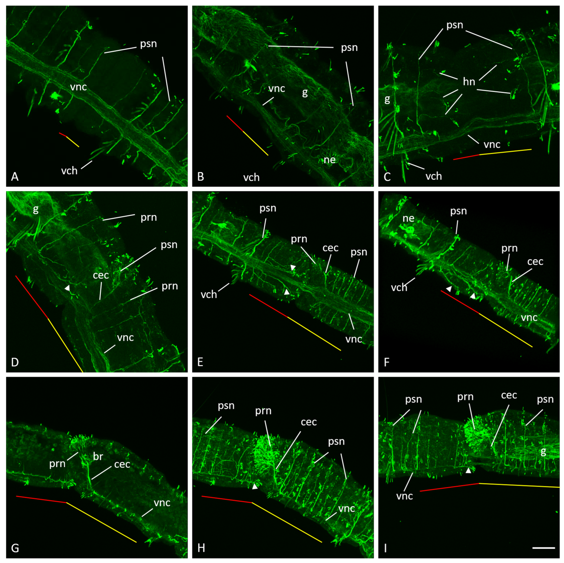 4.1. Nervous System Architecture in Growing N. communis, Its Remodeling and Development During Asexual Reproduction