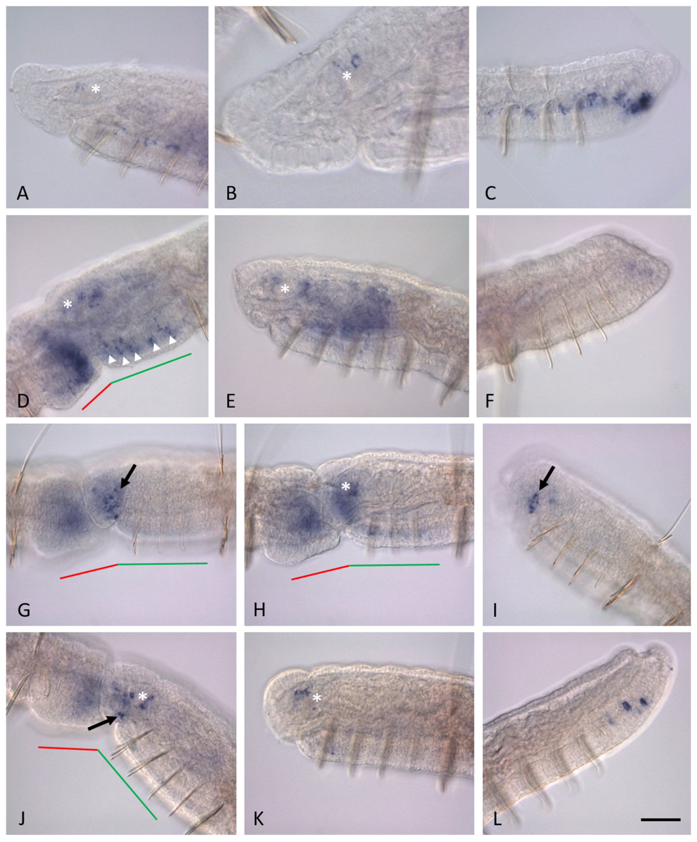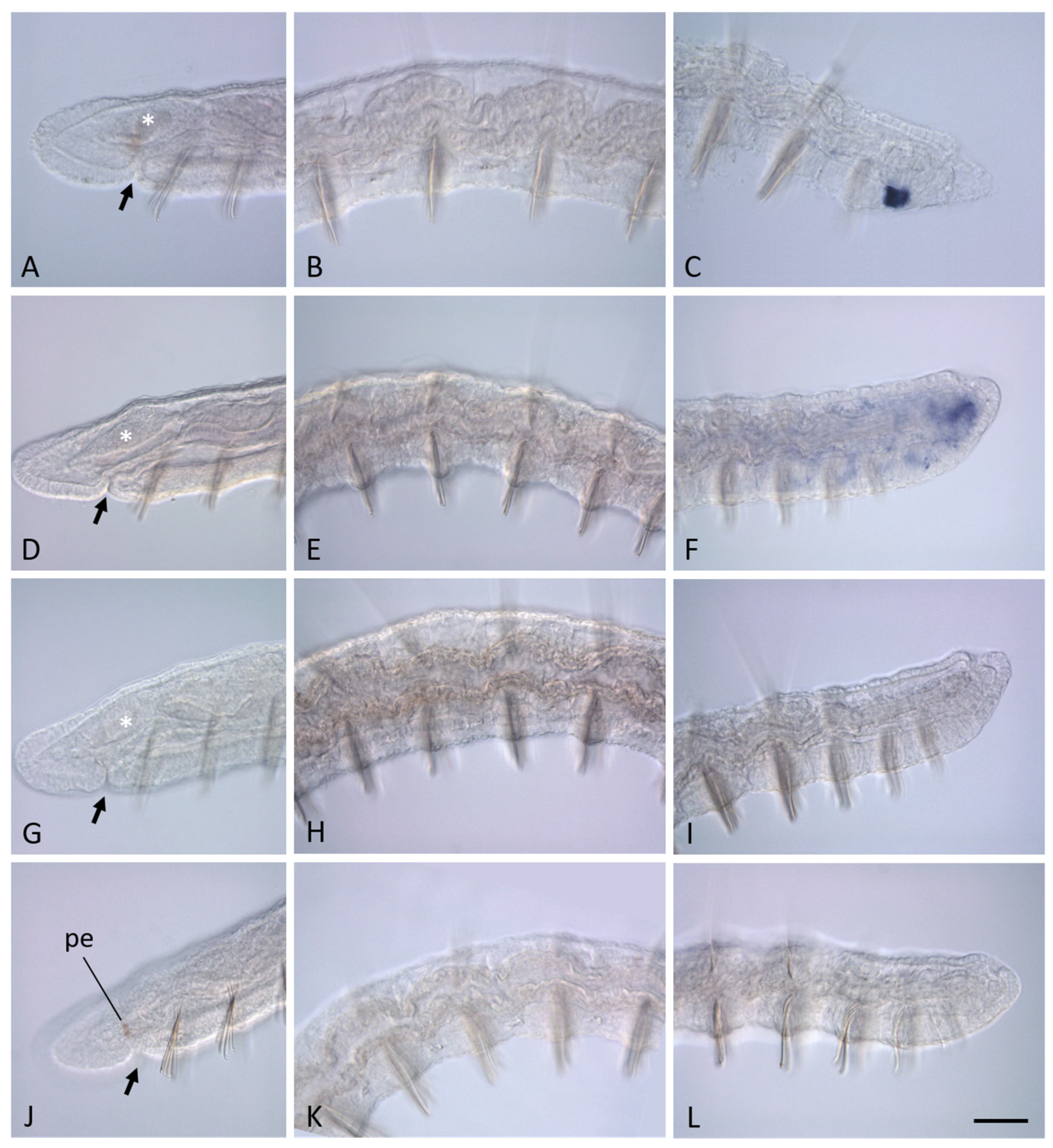 - Kerbl, A.; Martín-Durán, J.M.; Worsaae, K.; Hejnol, A. Molecular Regionalization in the Compact Brain of the Meiofaunal Annelid Dinophilus gyrociliatus (Dinophilidae). EvoDevo 2016, 7, 20. [Google Scholar] [CrossRef]