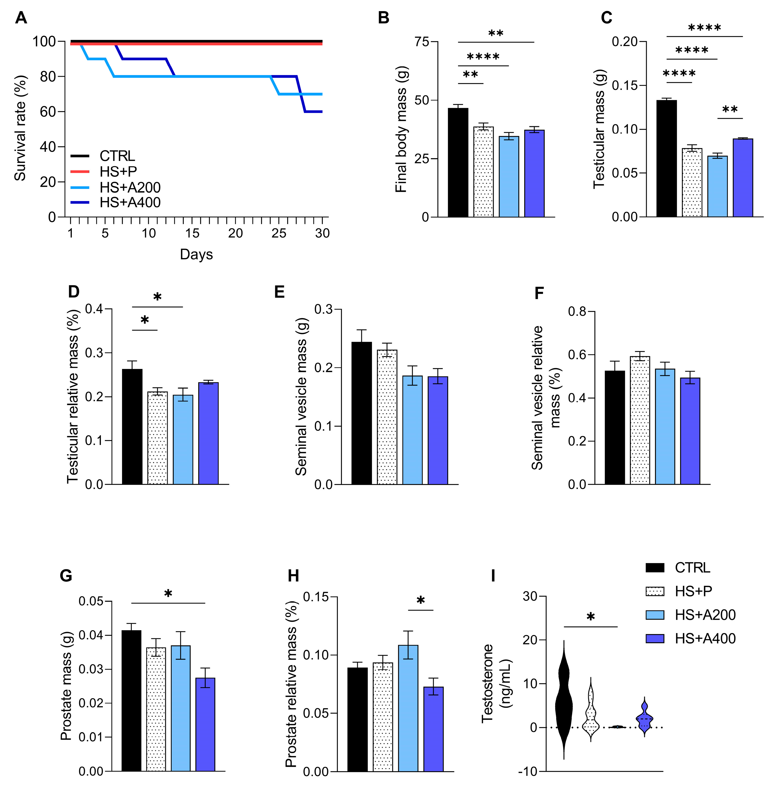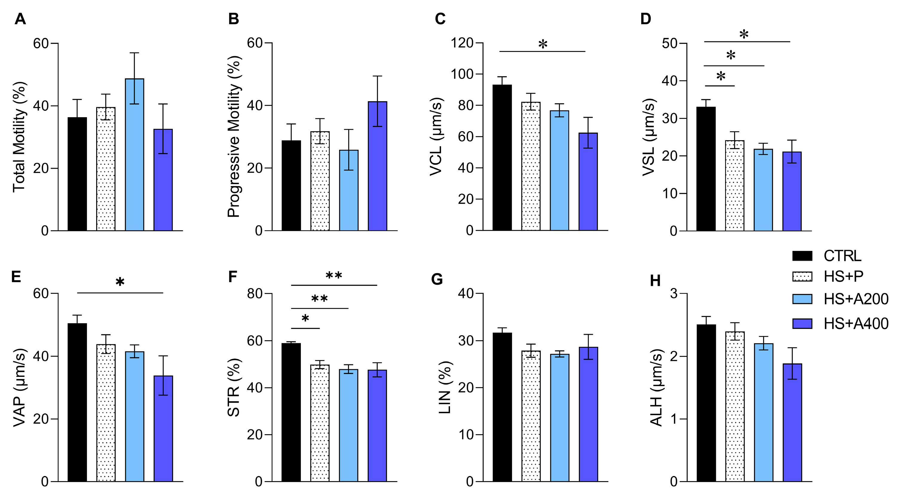 | CONTROL | HS + P | HS + A200 | HS + A400 | ANOVA | ||
