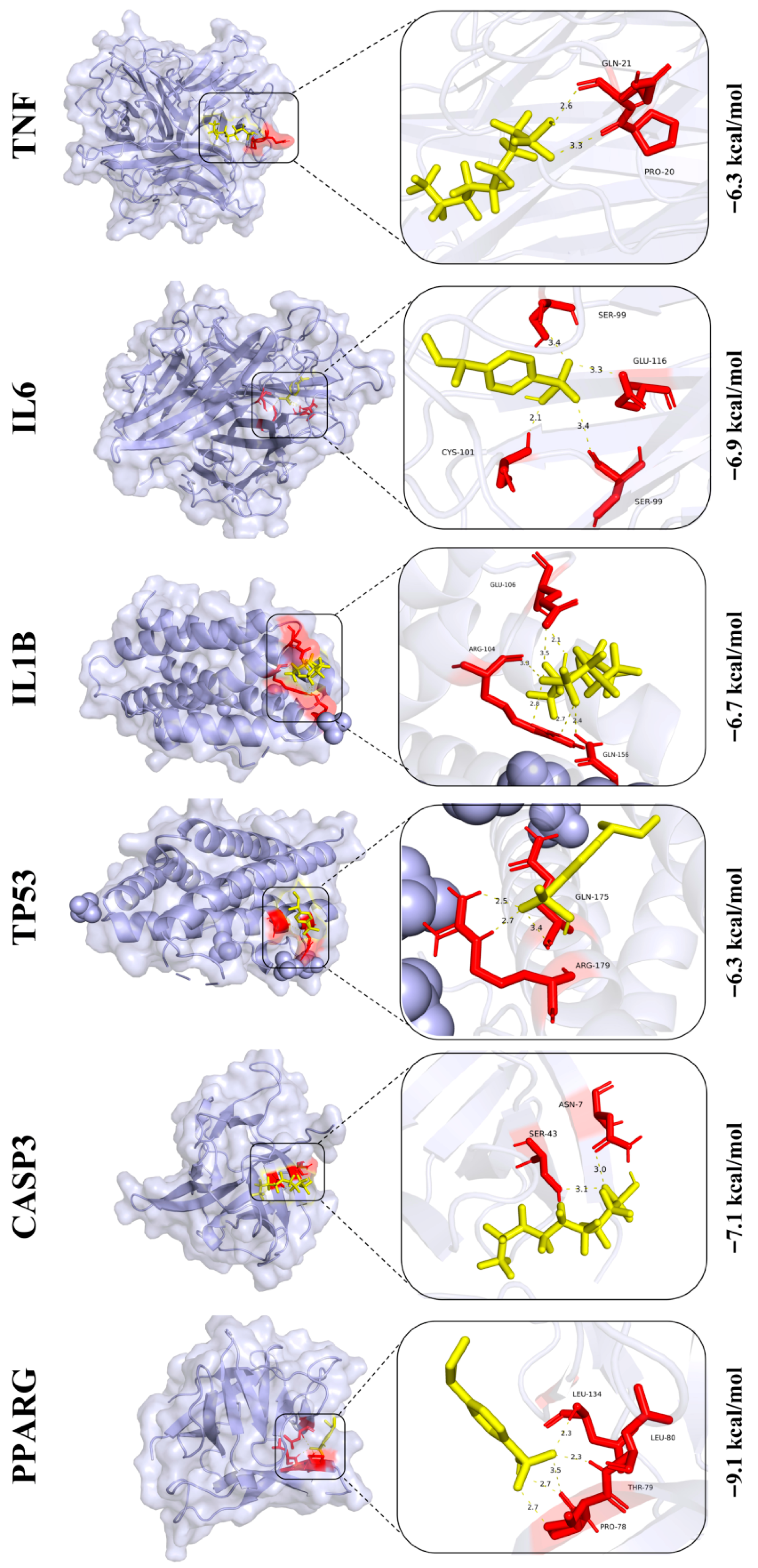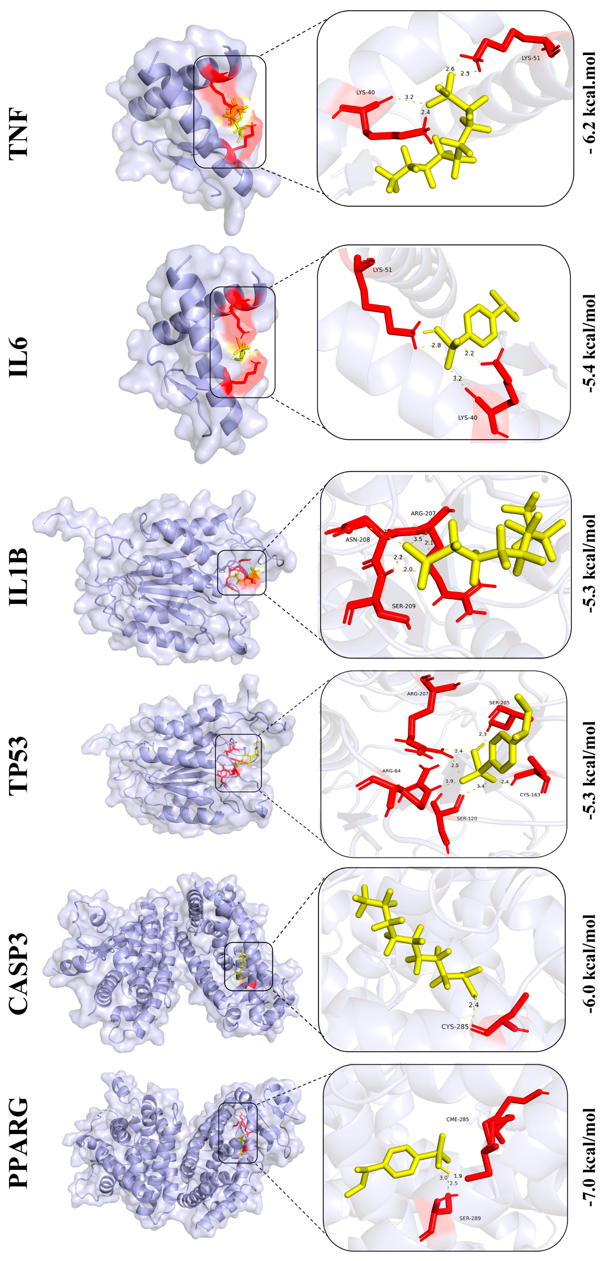 - Wang, F.; Cheng, B.; Wu, W.; Chen, Y.; Dai, J.; Li, Y. Mechanistic insights into PFOS-induced inflammatory bowel disease: A network toxicology and molecular docking study. Int. J. Surg. 2025, 111, 5150–5161. [Google Scholar] [CrossRef]