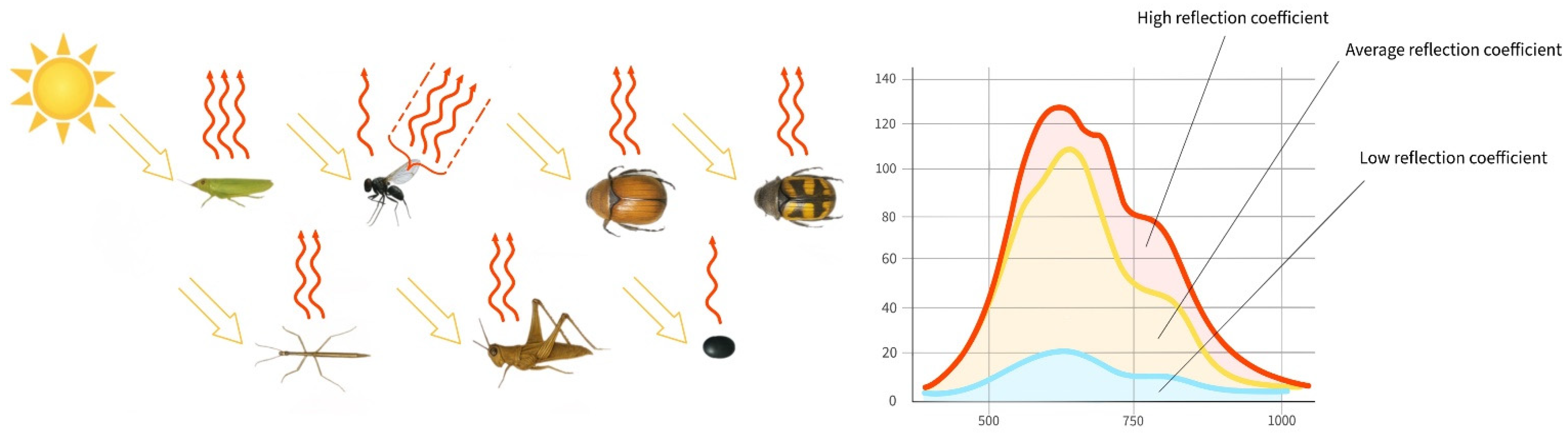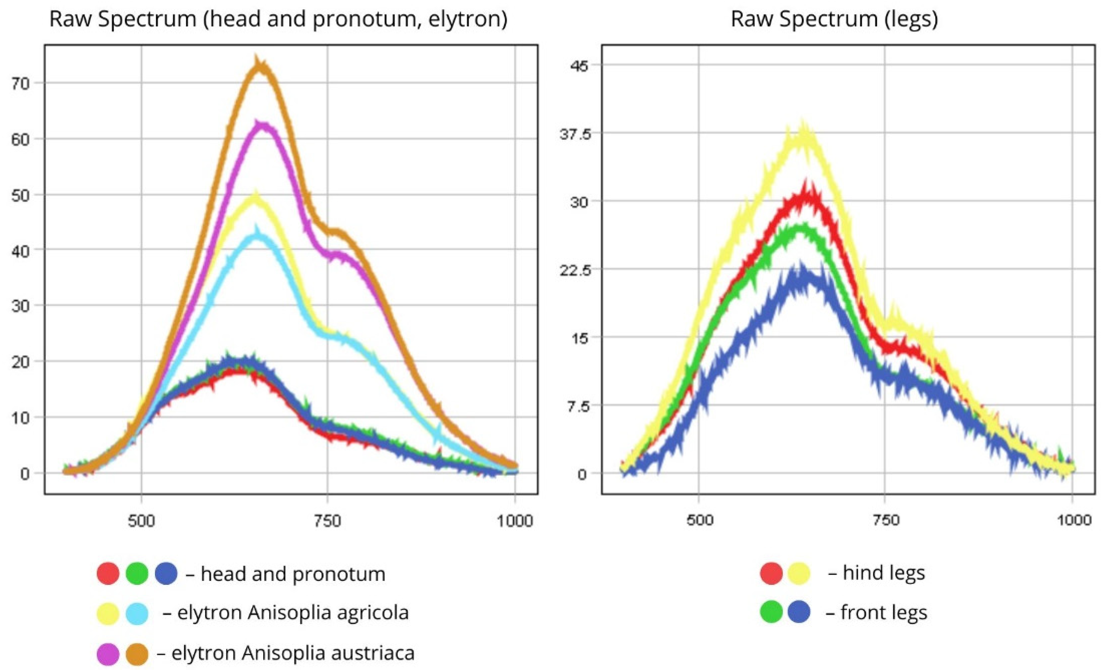Table 3. Spectral characteristic parameters of insects’ body parts.