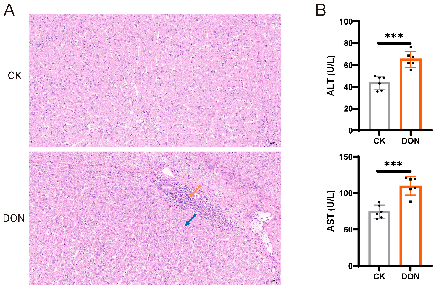 - Jiang, J.; Ruan, Y.; Liu, X.; Ma, J.; Chen, H. Ferritinophagy Is Critical for Deoxynivalenol-Induced Liver Injury in Mice. J. Agric. Food Chem. 2024, 72, 6660–6671. [Google Scholar] [CrossRef]