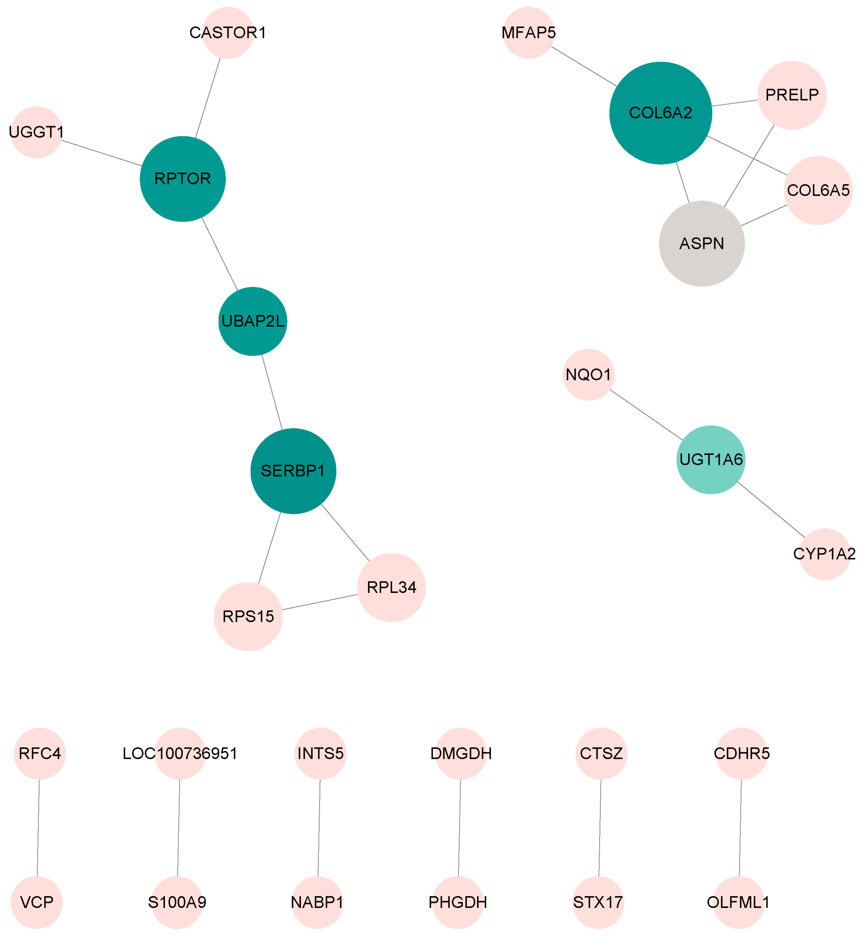 3.4. Protein–Protein Interaction (PPI) Analysis