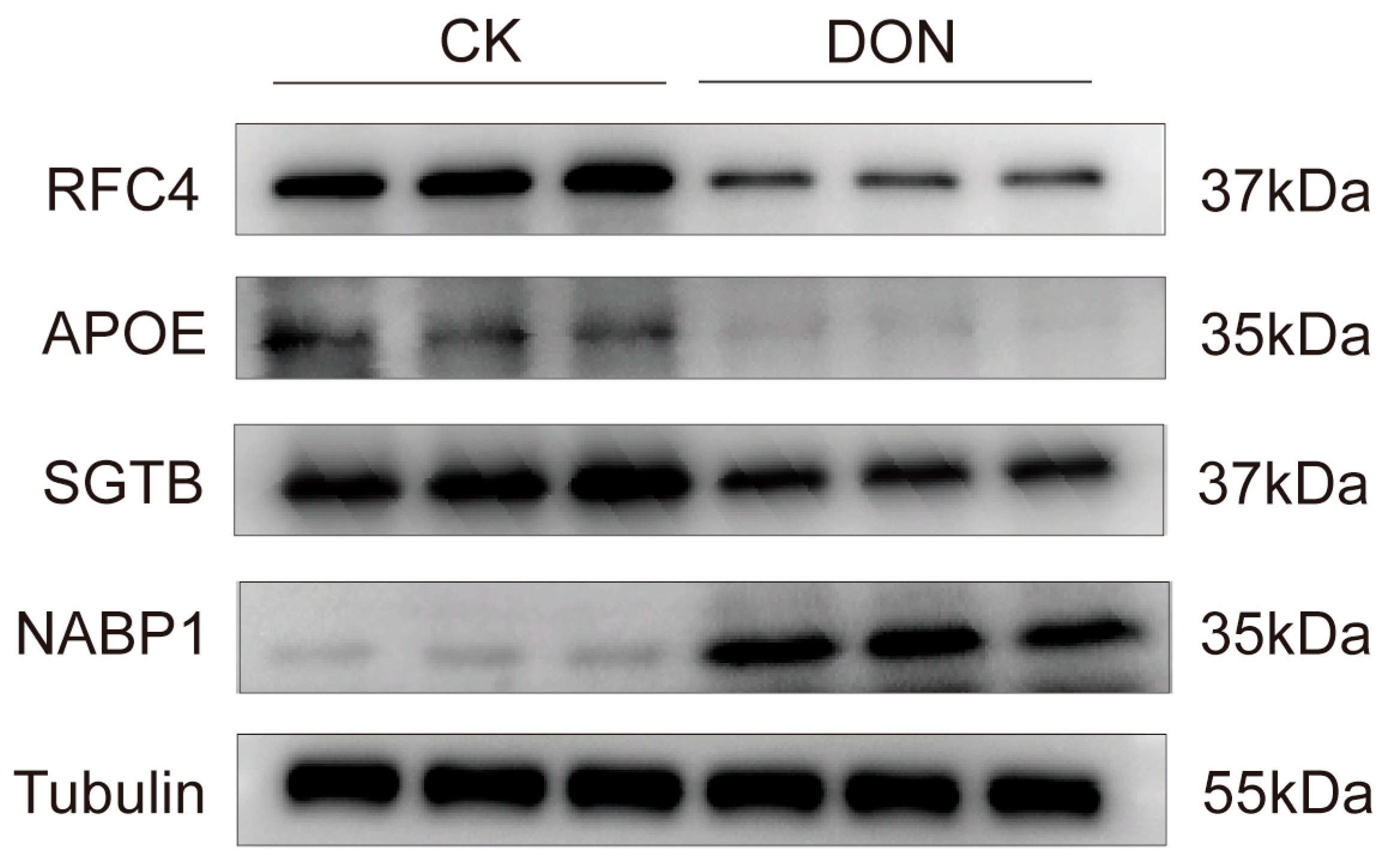3.3. DON-Exposed Interfered Protein Expression in Liver