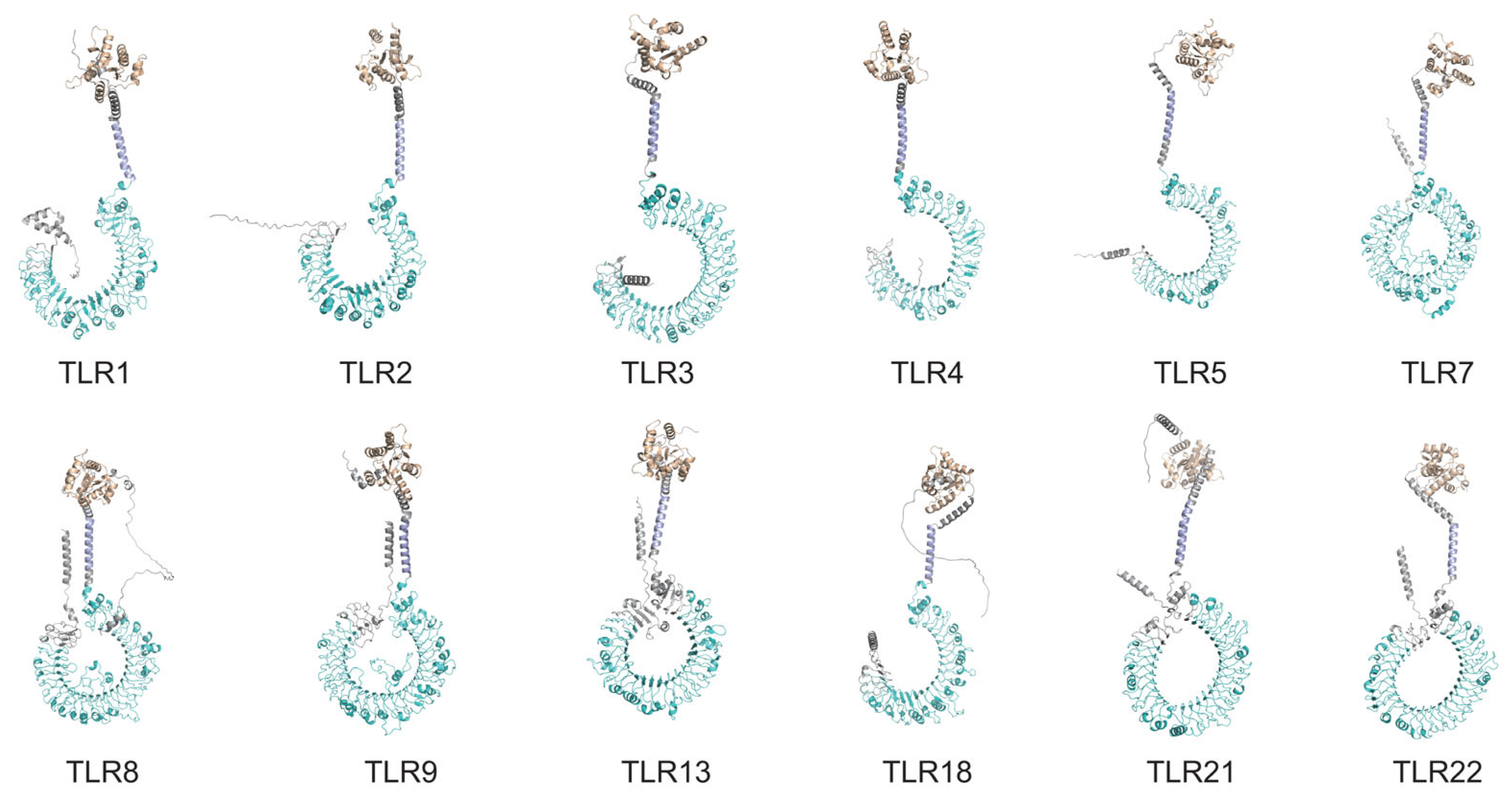 3.5. Predicted Tertiary Structures of the PvTLRs