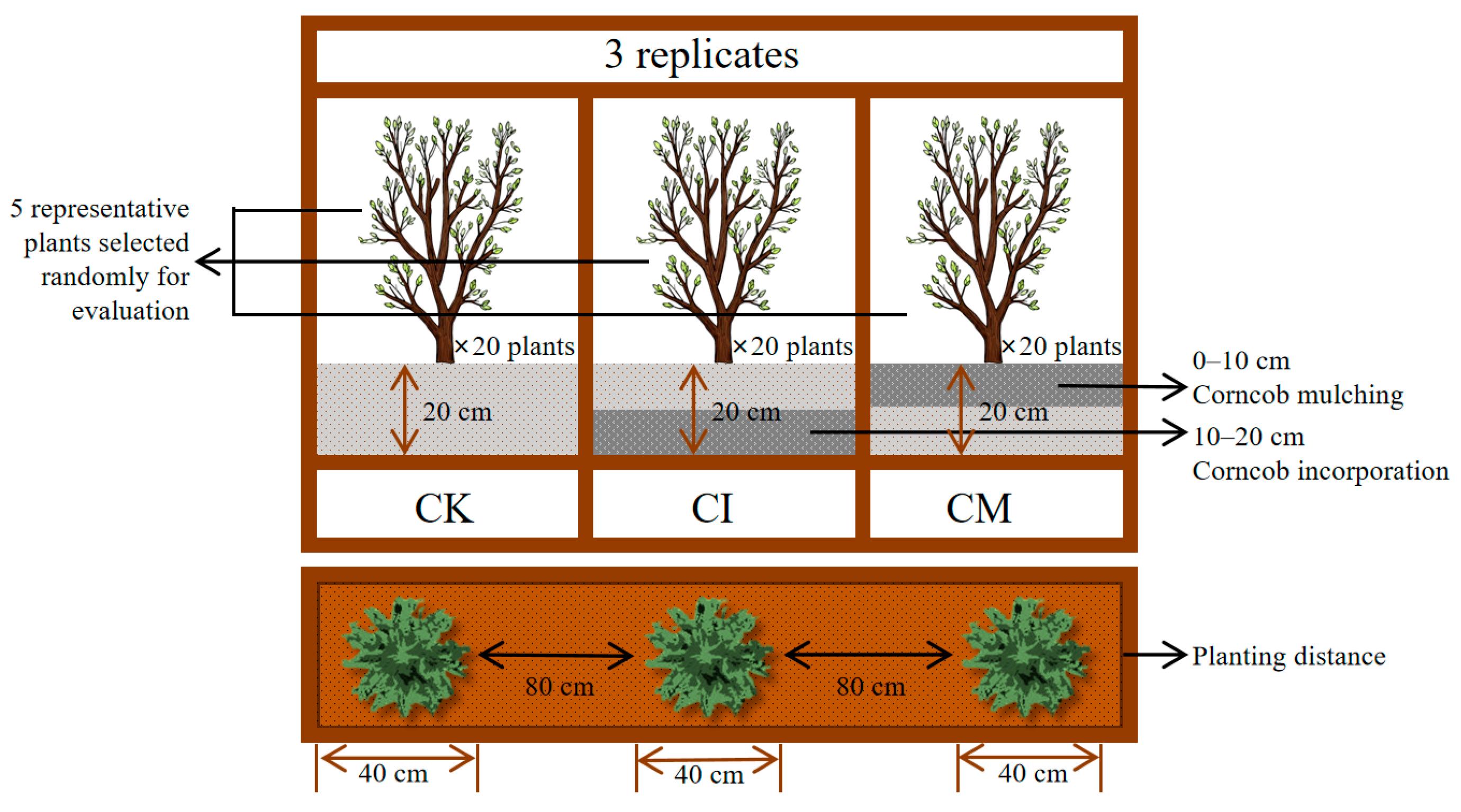 - Tang, H.; Wang, Z. Effects of Corncob Carbon on Peanut Growth and Soil Properties. E3S Web Conf. 2024, 560, 02003. [Google Scholar] [CrossRef]