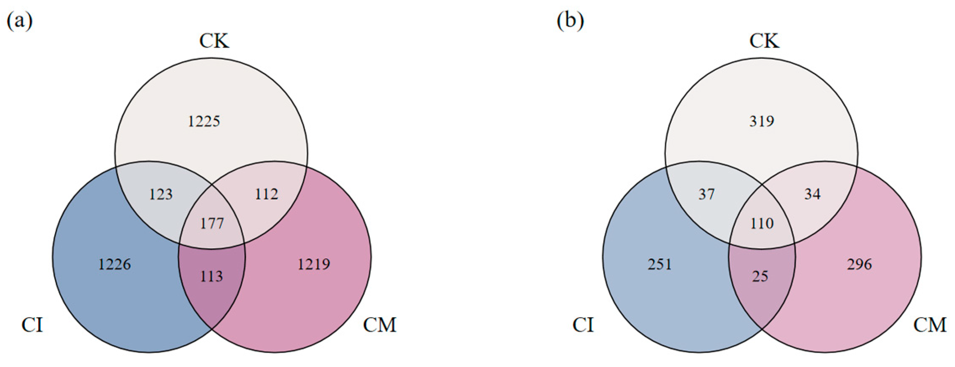 3.2.1. Effects of Corncob Returning on Soil Microbial OTU Richness