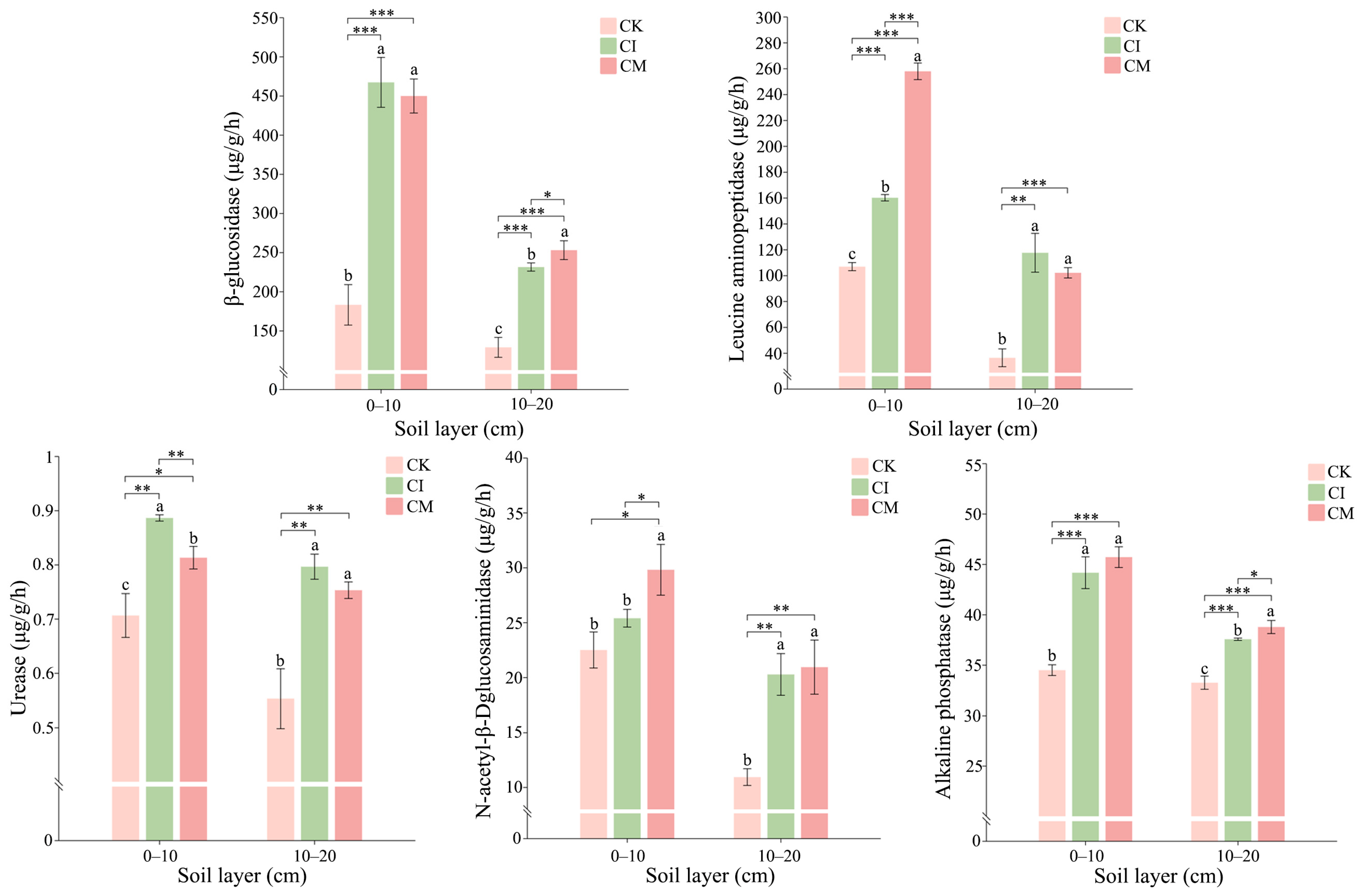 3.4. Effects of Corncob Returning on Soil Enzyme Activities
