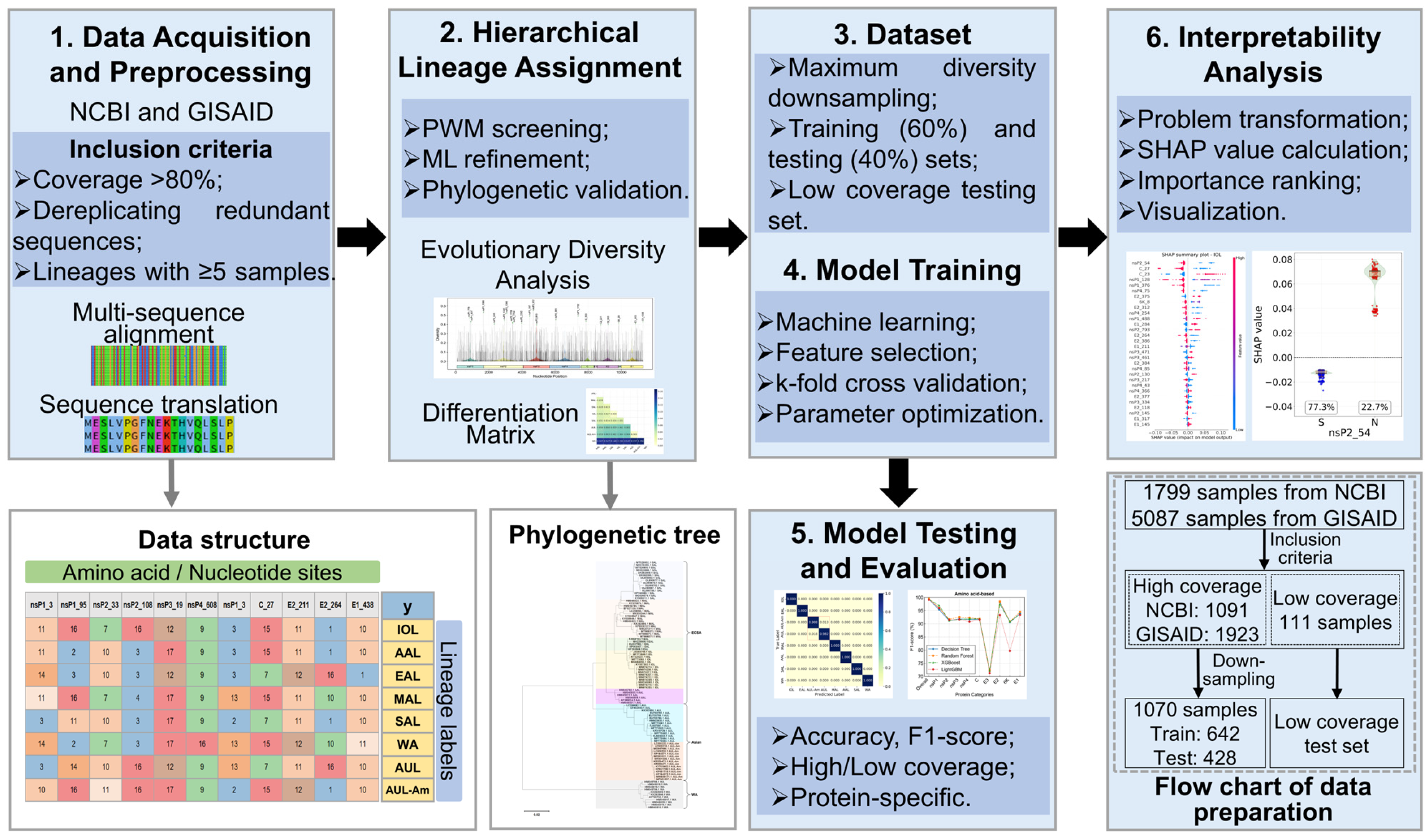 - We constructed a high-quality CHIKV genome dataset with fine-grained lineage labels using a hierarchical classification pipeline that combines rapid Position Weight Matrix (PWM) screening, targeted machine learning refinement, and phylogenetic validation.