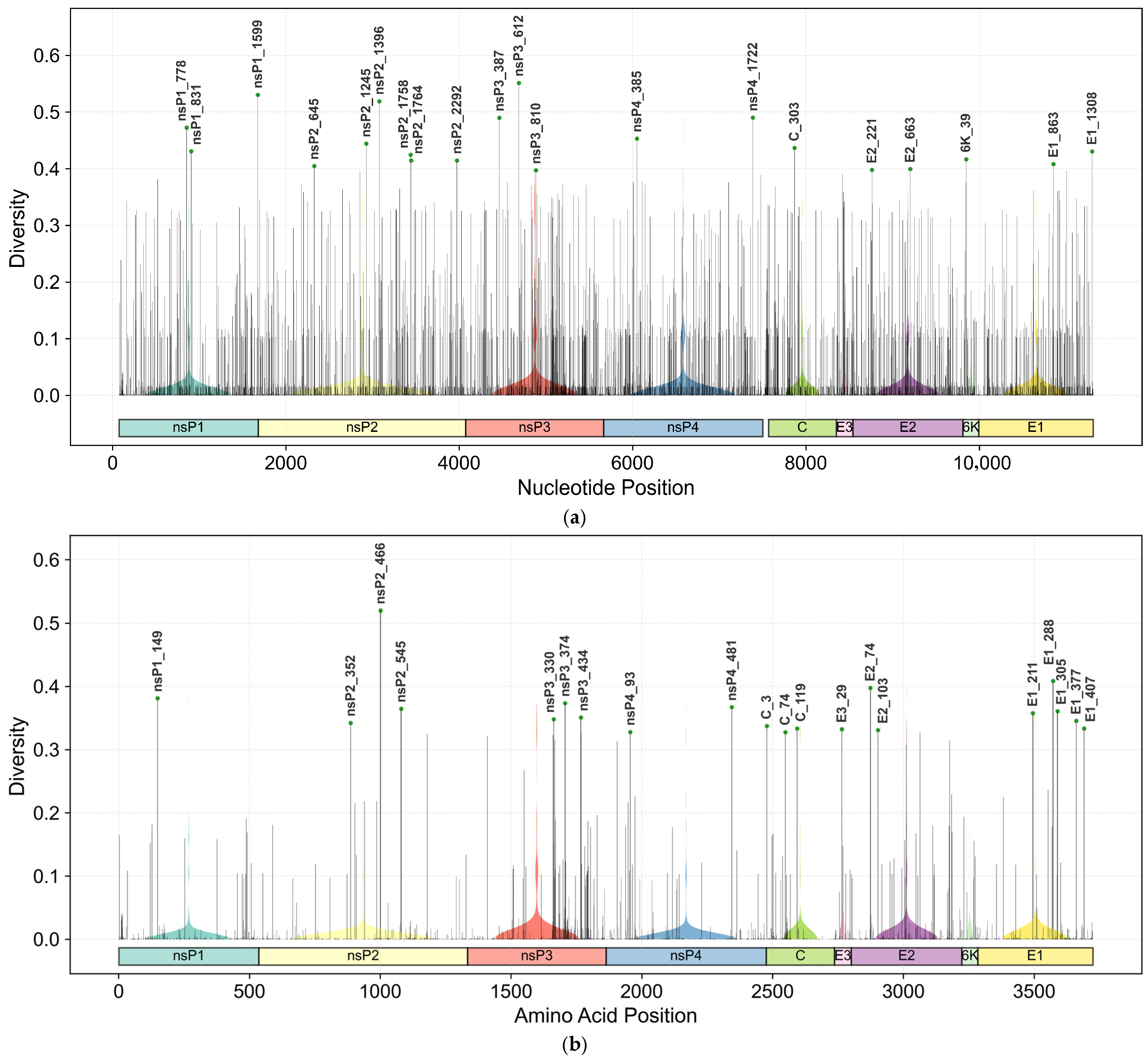 3.1. Landscape of Genetic Diversity Across CHIKV Genomic Regions