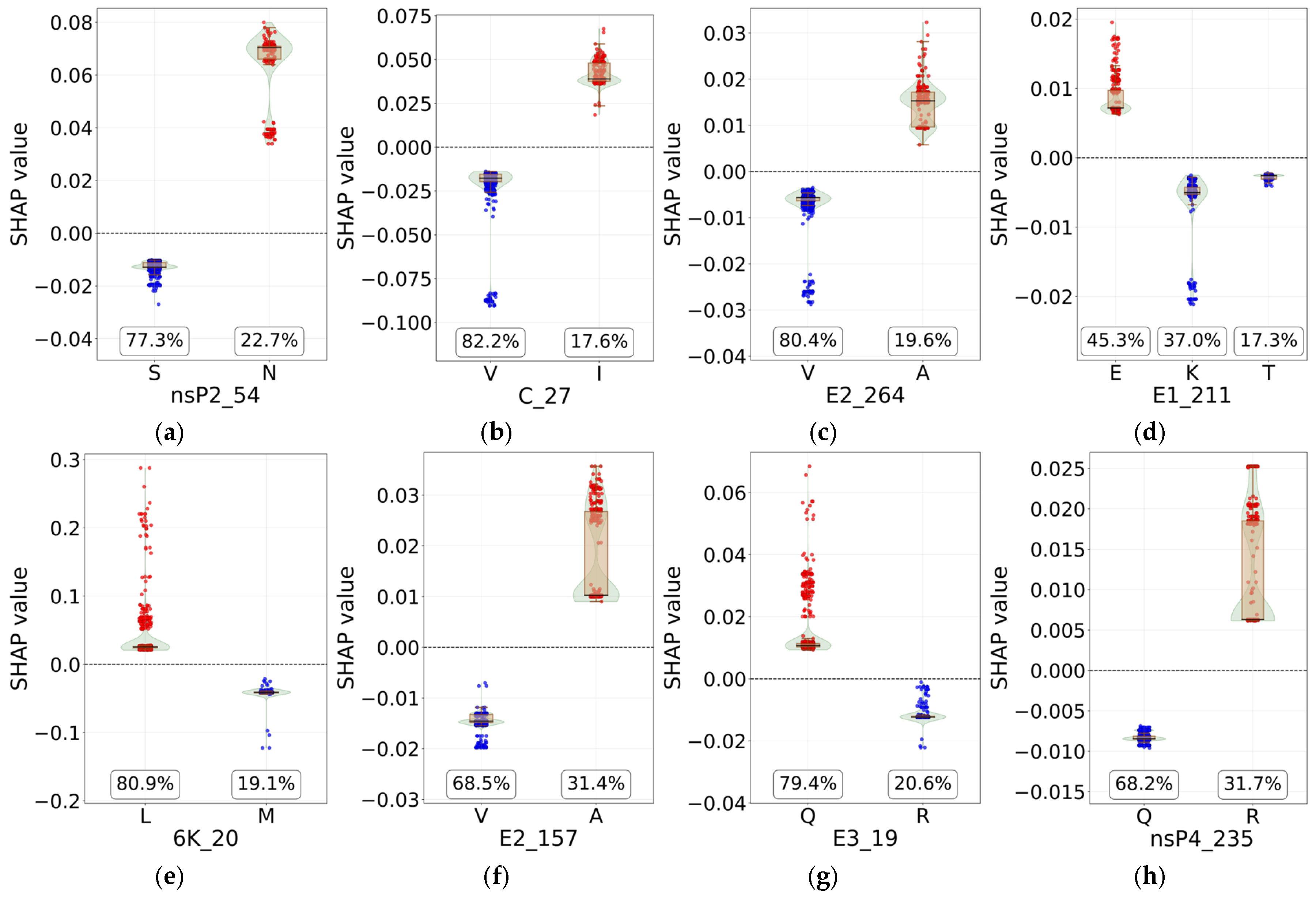 - We employed SHapley Additive exPlanations (SHAP), an interpretability framework, to identify and validate key amino acid substitutions associated with specific lineages, thereby bridging data-driven predictions with established biological knowledge and offering novel insights into CHIKV evolution and adaptation.