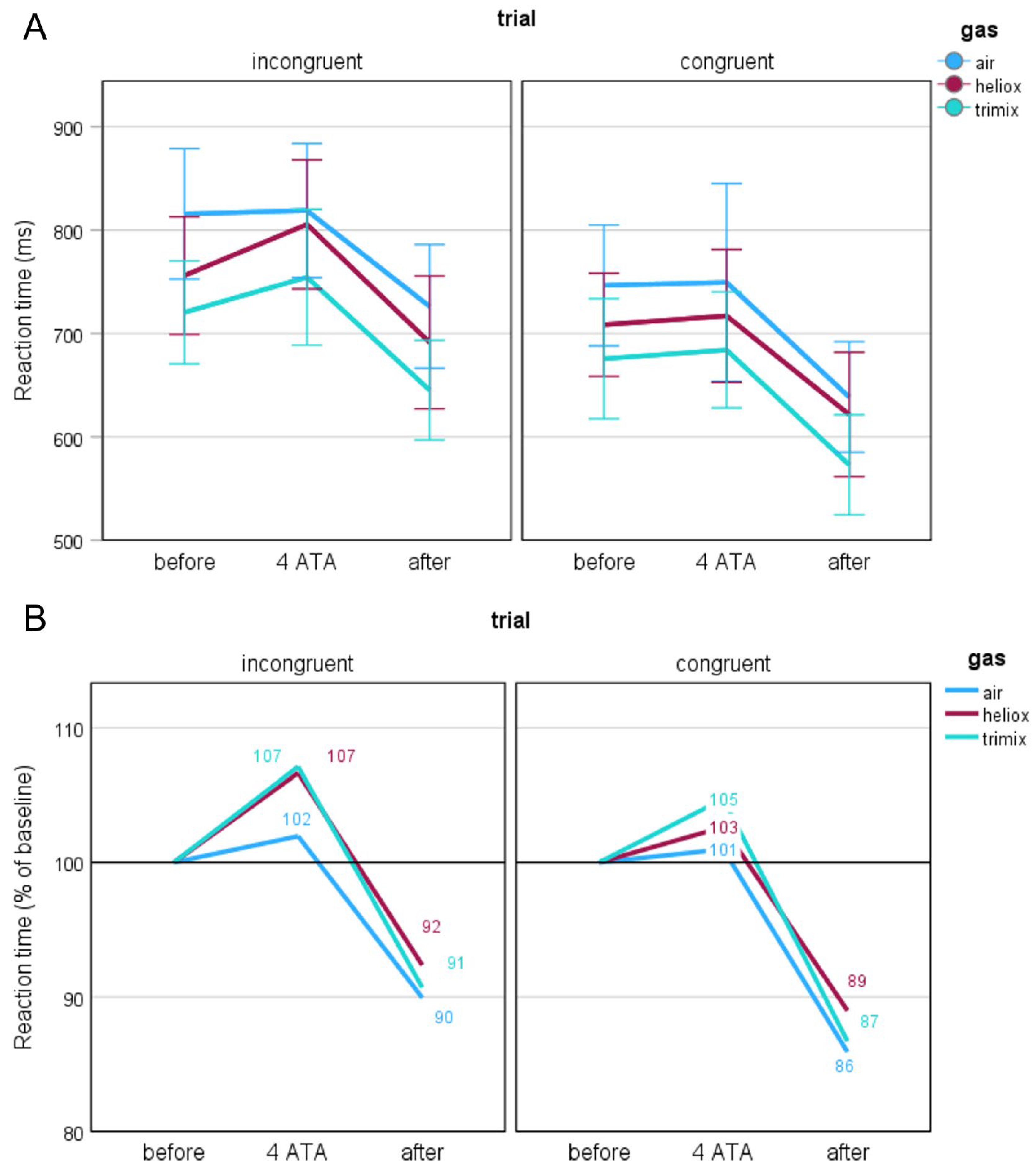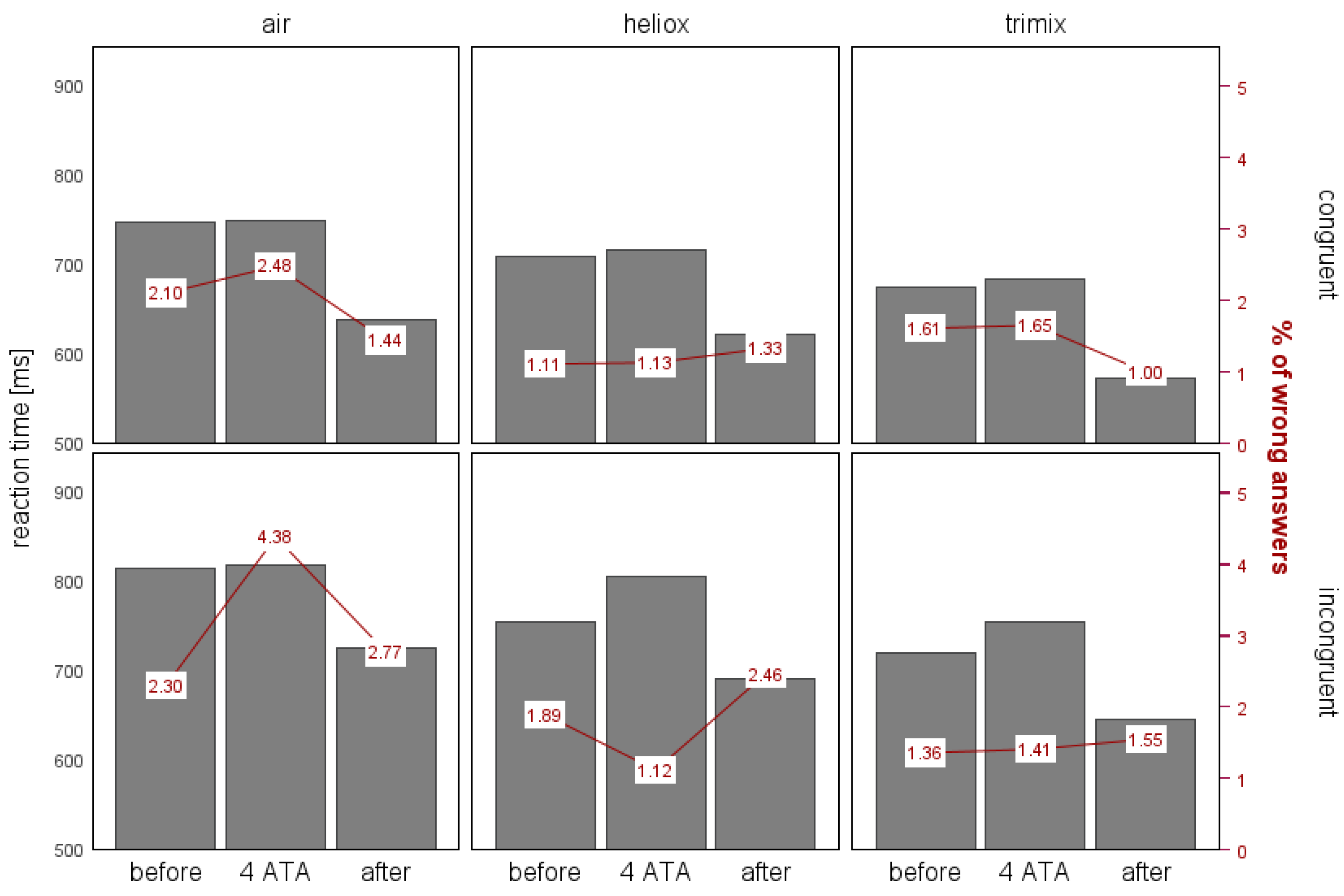 - Stage II (4 ATA)—during exposure at 4 ATA while breathing one of the experimental gas mixtures;