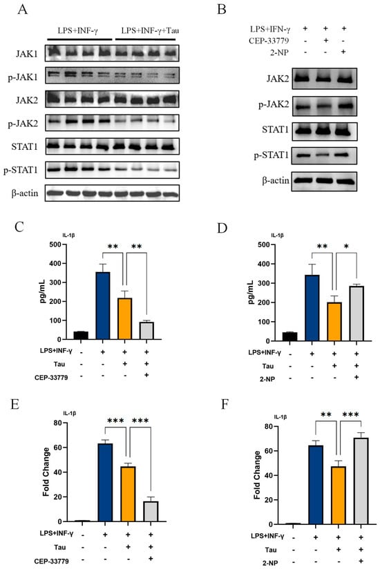 3.3. Taurine Inhibits IL-1β Production in M1 Macrophages by Suppressing the JAK1/2-STAT1 Signaling Pathway
