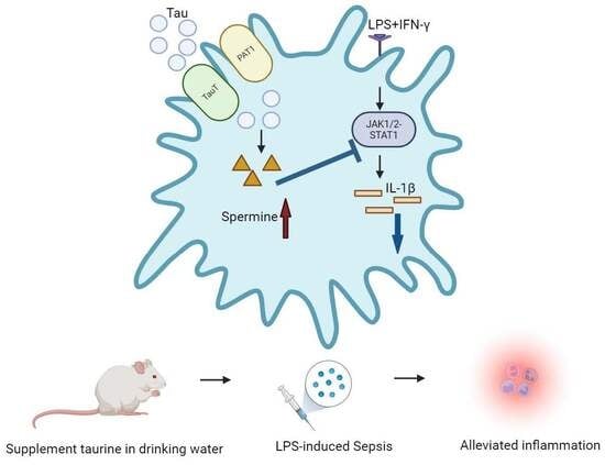 Chicago/Turabian StyleZhang, Zi’an, Danyue Li, Suhui He, Weilv Xu, Qian Lv, Yumeng Wang, Jinxia Xu, Zexu Yu, Shiyang Liu, Yuanxiang Ge, and et al. 2025. "Taurine Attenuates M1 Macrophage Polarization and IL-1β Production by Suppressing the JAK1/2-STAT1 Pathway via Metabolic Reprogramming" Biology 14, no. 12: 1751. https://doi.org/10.3390/biology14121751