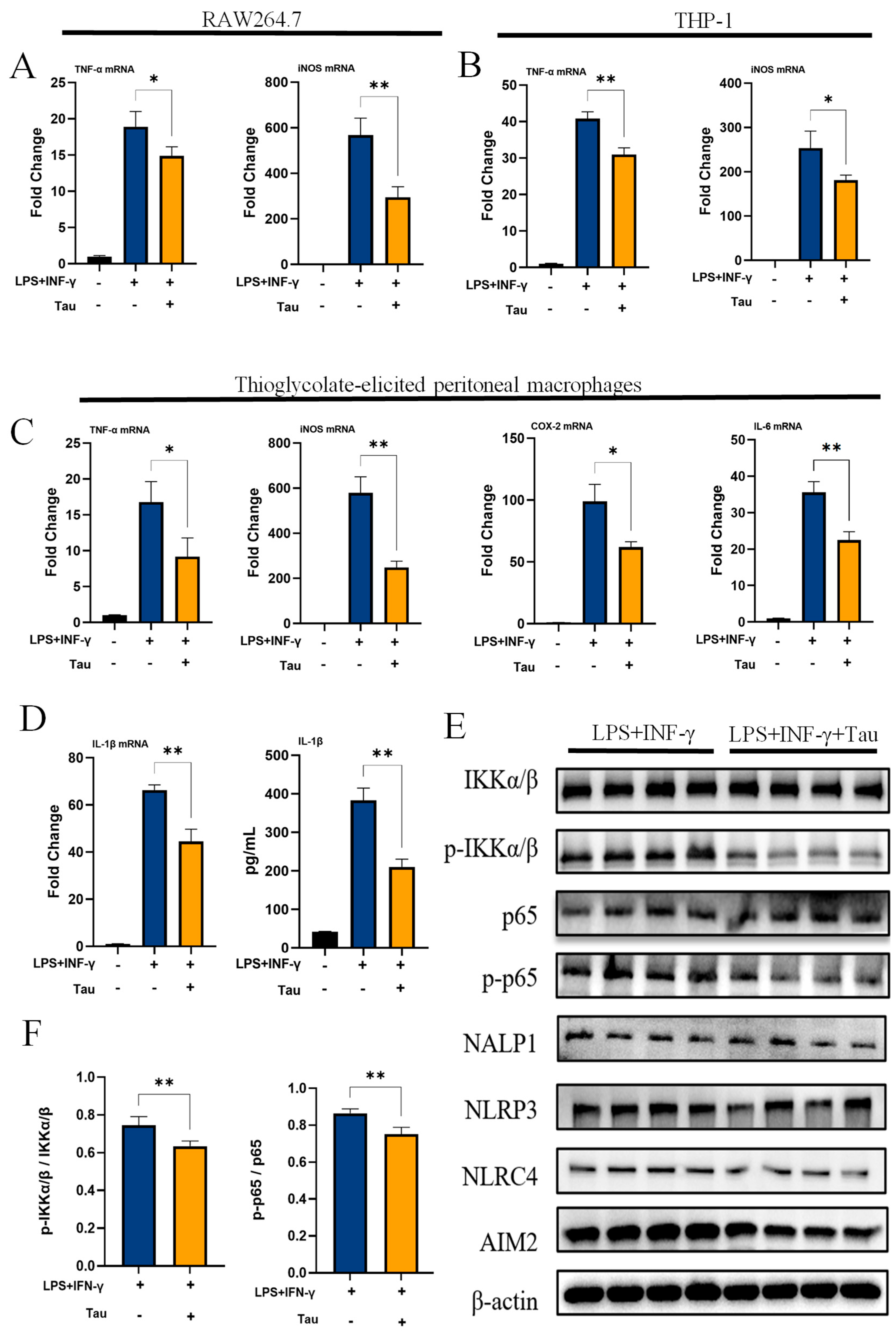 3.1. Taurine Inhibits M1 Macrophage Inflammation