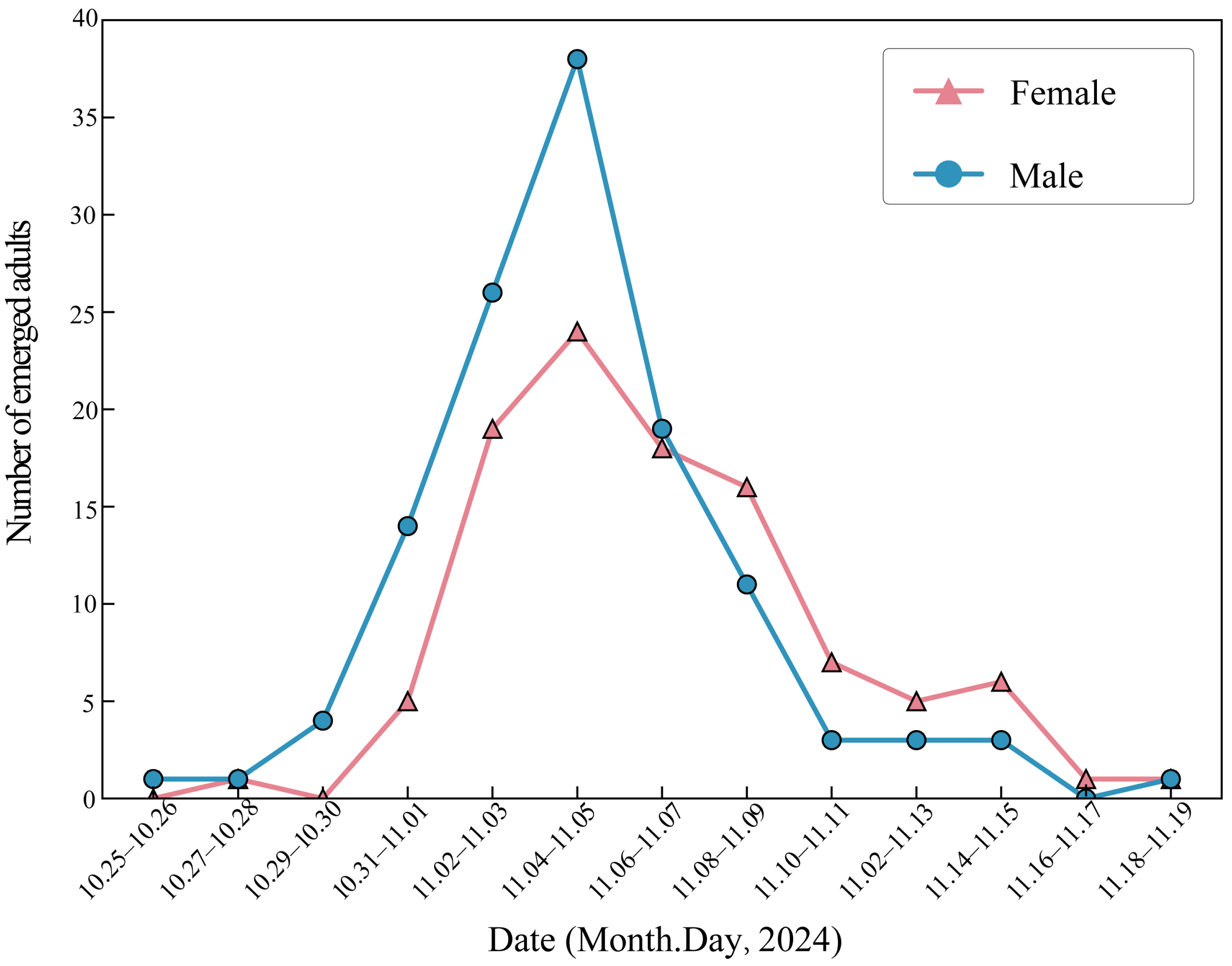 APA StyleYuan, S., Yang, M., He, R., Liu, B., Wang, S., Yang, Z., & Hu, P. (2025). Life History of the Giant Looper Moth Ascotis selenaria (Lepidoptera: Geometridae) in Eucalyptus Plantations and the Effect of Adult Mating Age on Fecundity. Biology, 14(12), 1780. https://doi.org/10.3390/biology14121780
