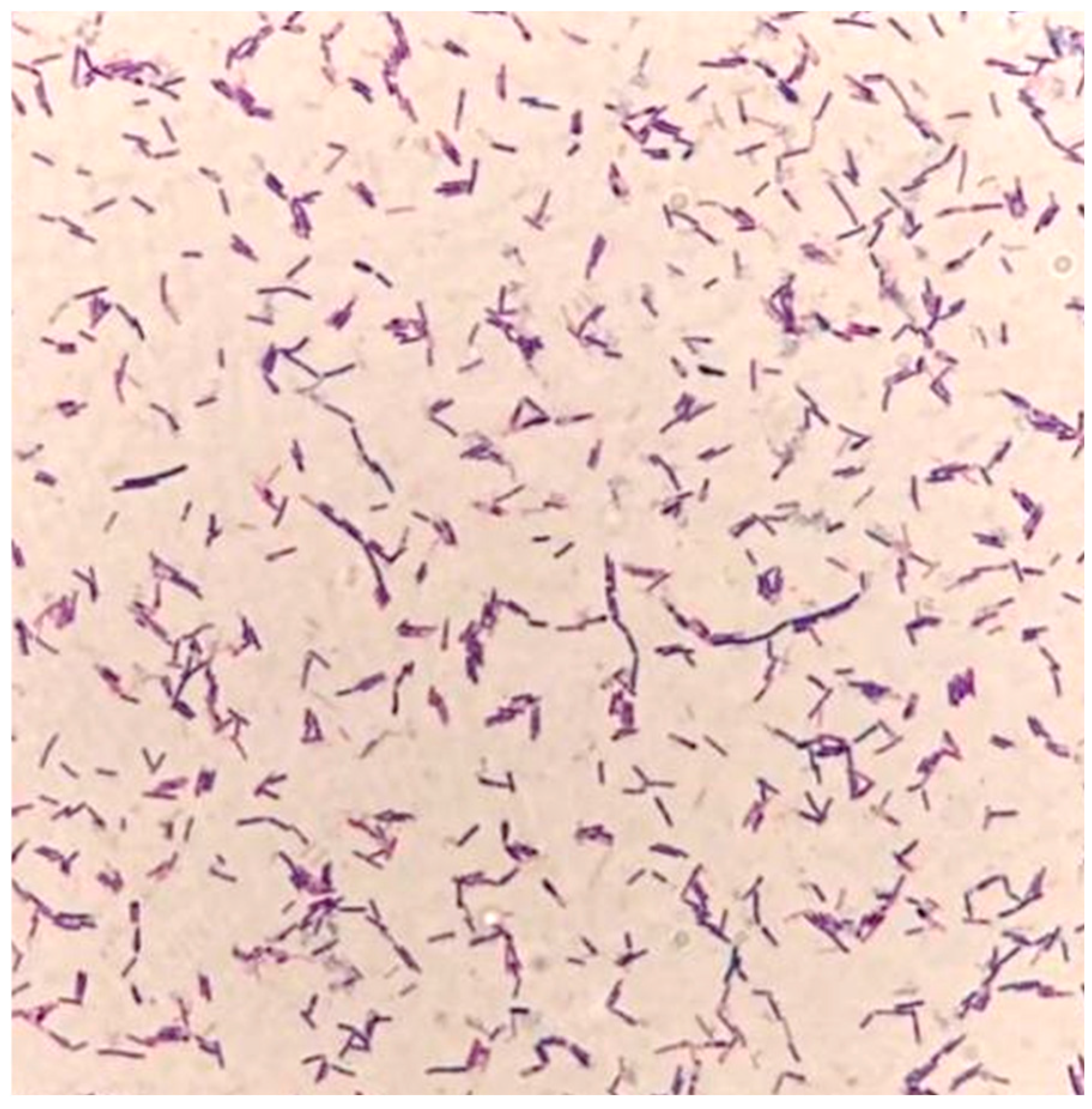 2.2. Bacterial Isolation, Staining, and Microscopic Observation