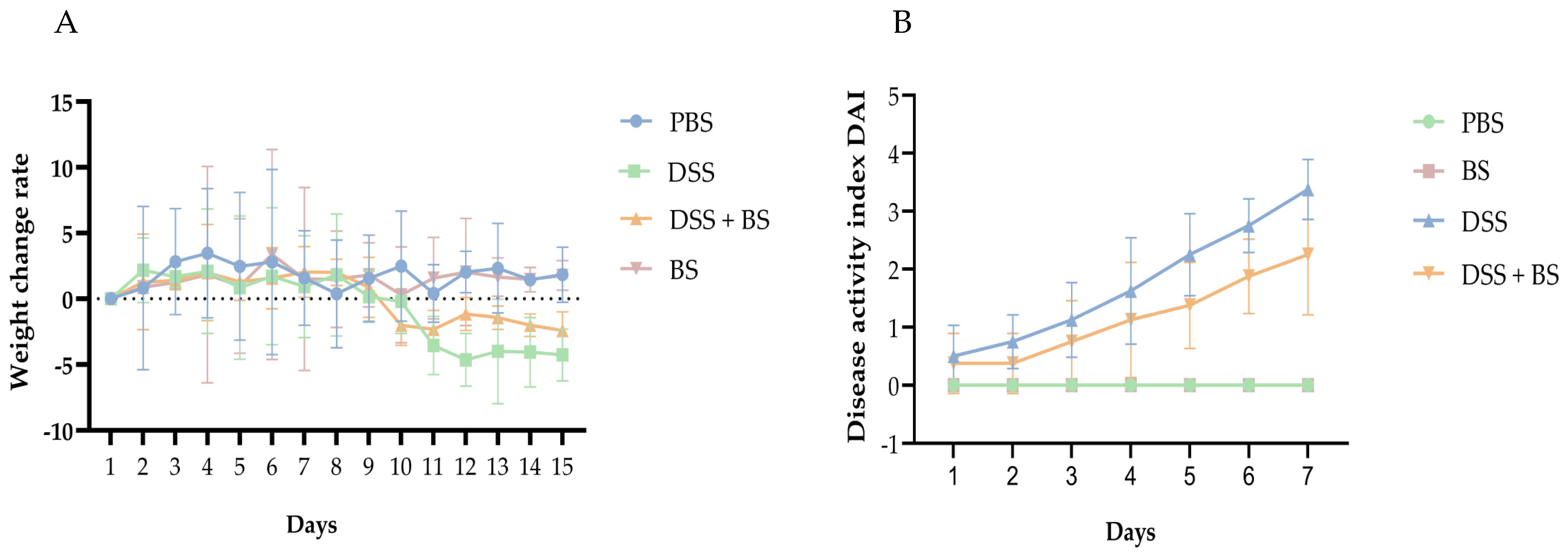 2.7. Development of Animal Models and DSS-Induced Experiment
