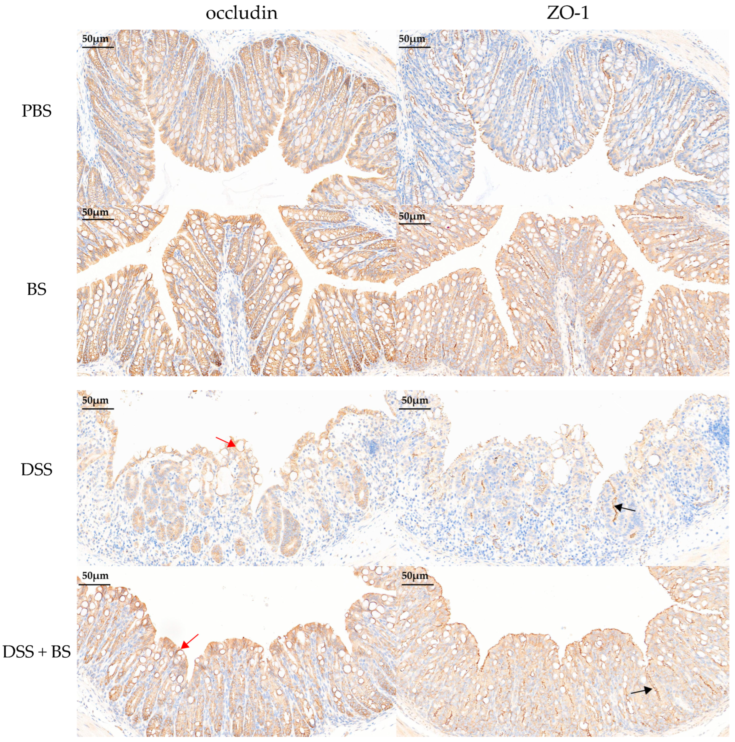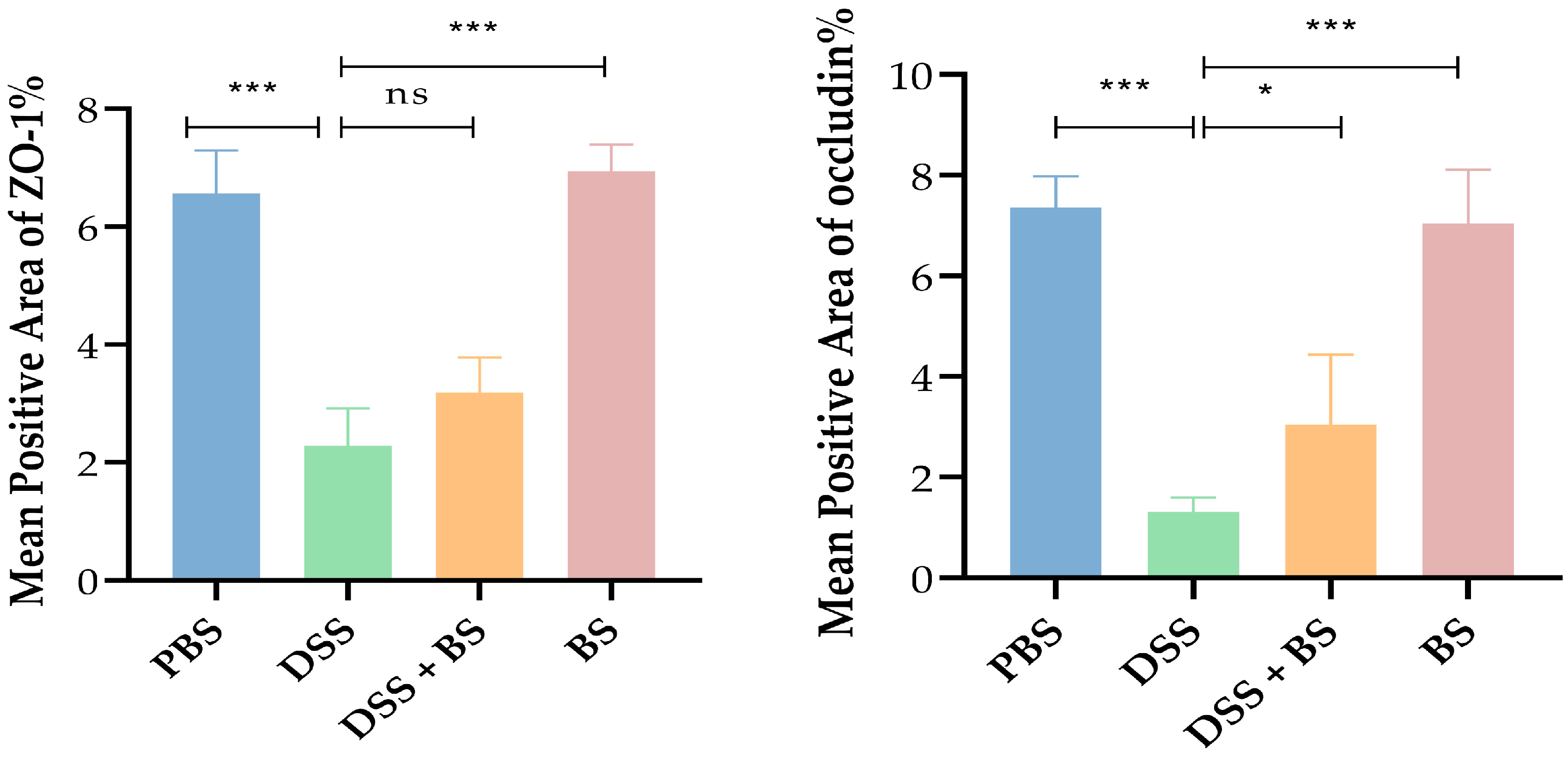 3.5.3. The Effect of Bacillus subtilis on Tight Junction Proteins in Colonic Tissue