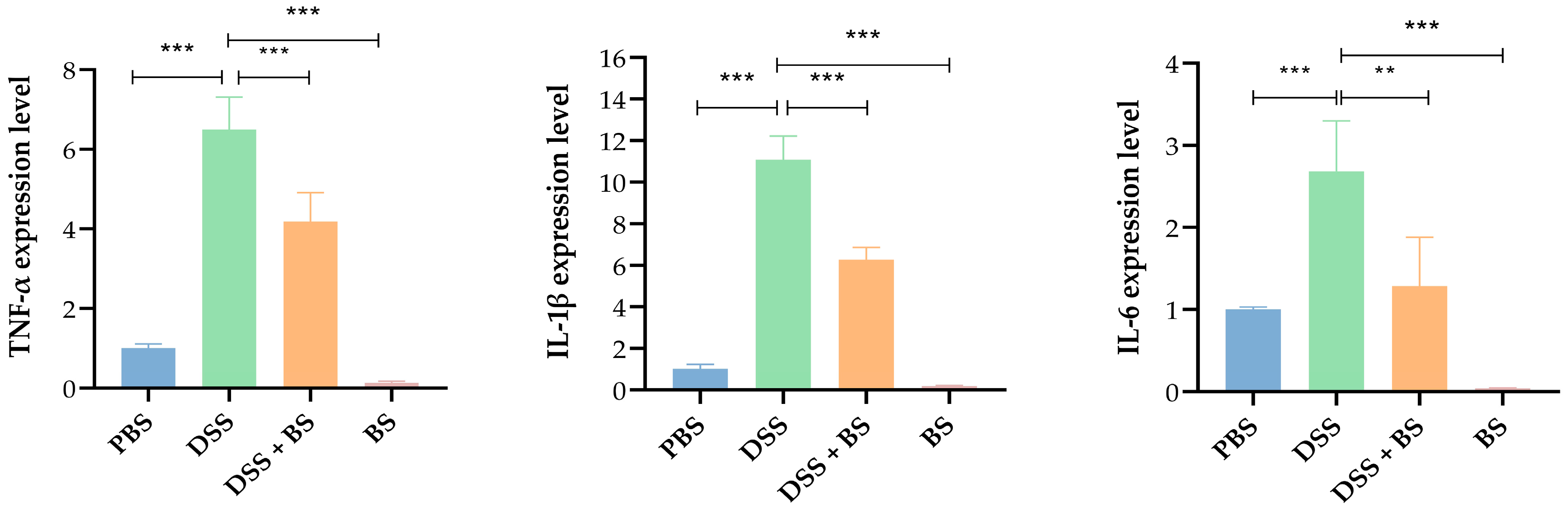 3.5.4. The Effect of Bacillus subtilis on the Expression of Inflammatory Factors