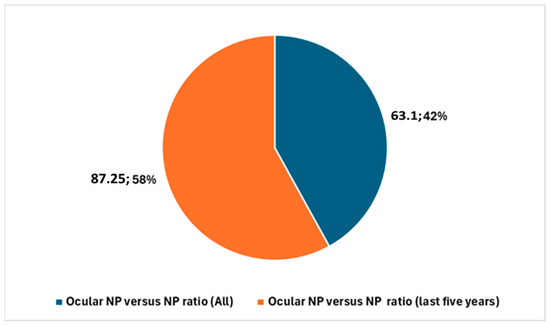 Trends in the number of publications on ocular NP over the last five years, the last ten years, and earlier.